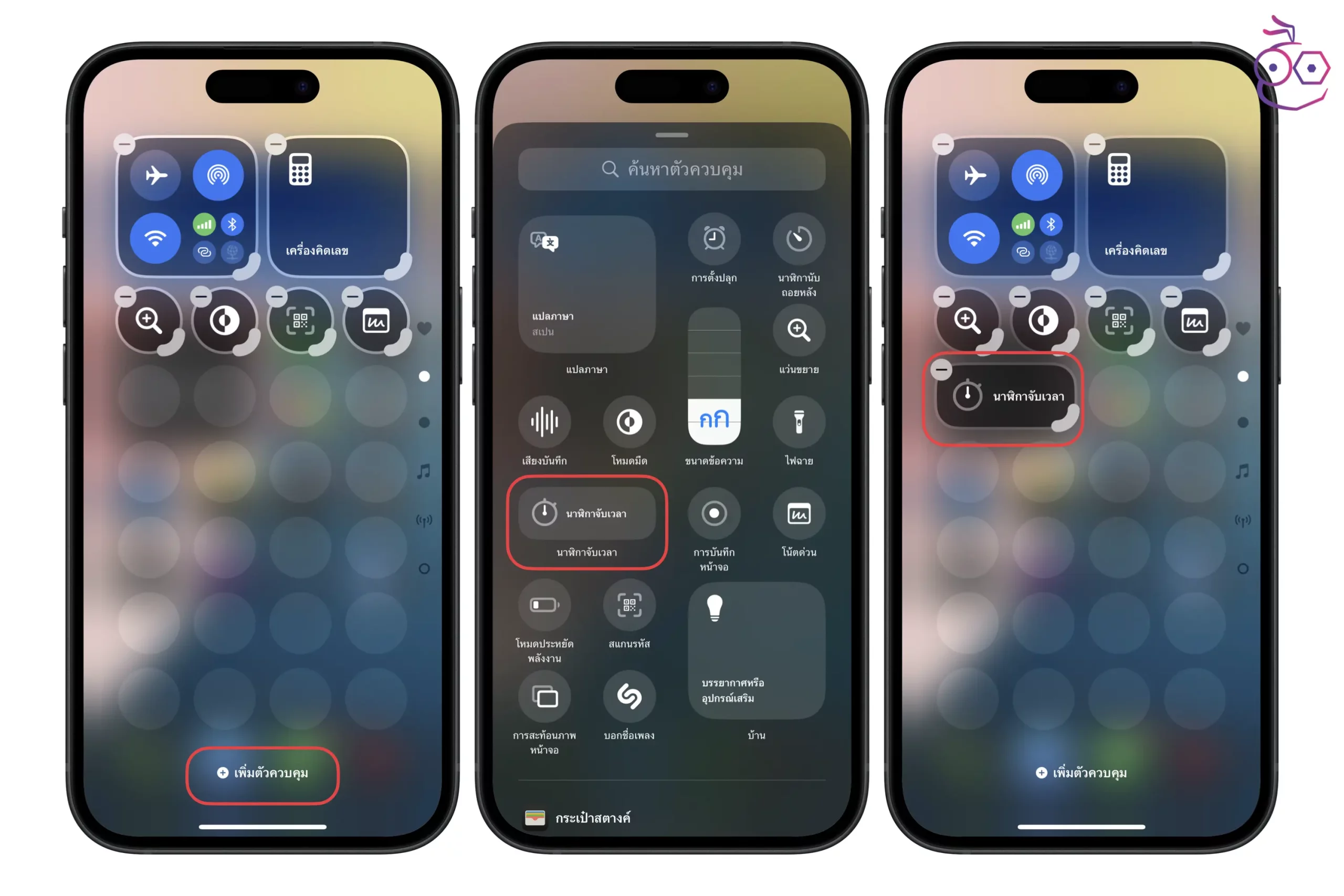 ถ้าหากต้องการเพิ่มตัวควบคุมอื่น ๆ เข้ามาบนหน้าจอ ก็แตะ เพิ่มตัวควบคุม แล้วเลือก ตัวควบคุมที่ต้องการ