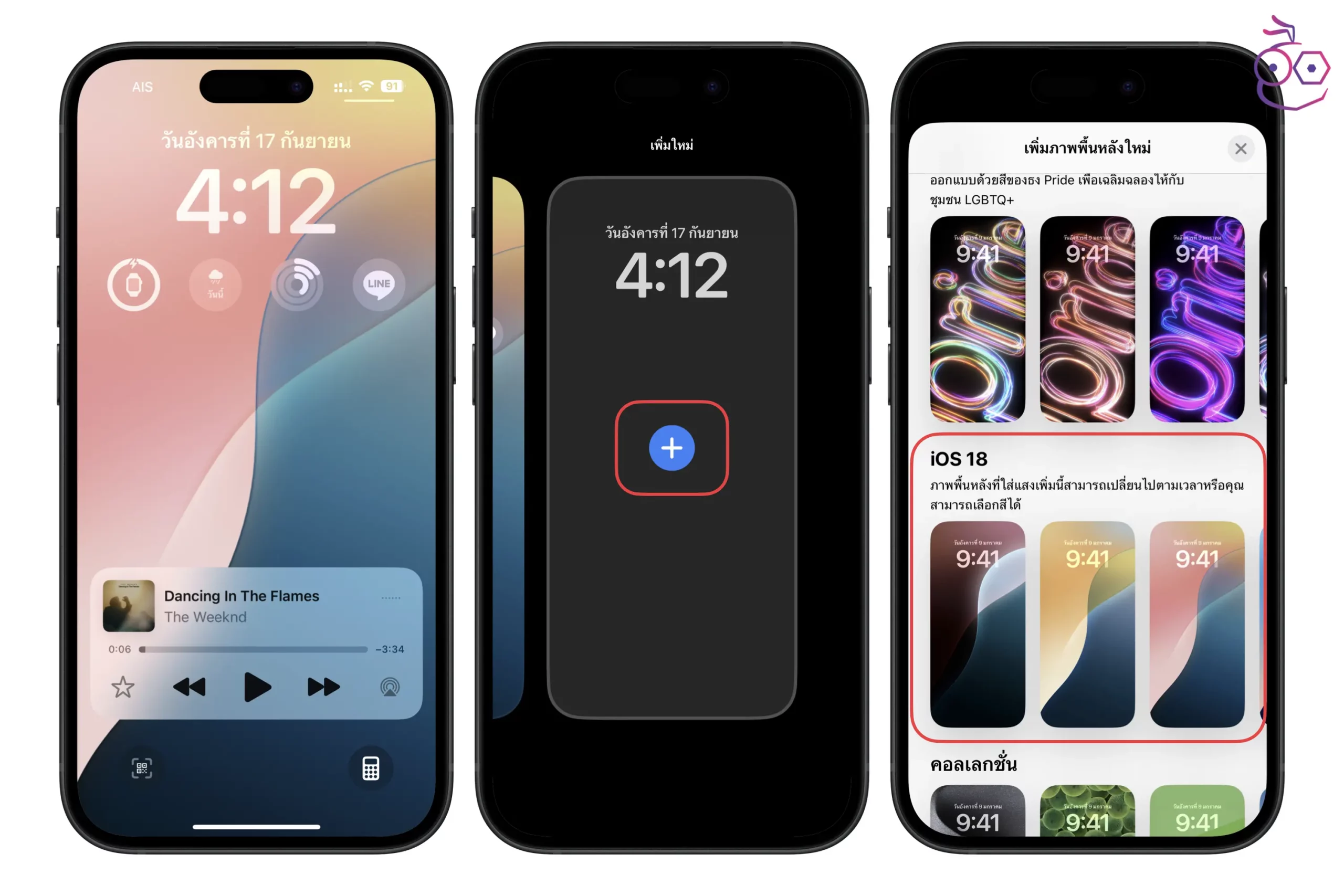 ใน iOS 18 ได้เพิ่มหน้าวอลเปเปอร์ใหม่ในธีม iOS 18 มีให้เลือกหลายสีสัน สามารถตั้งค่าได้ดังนี้