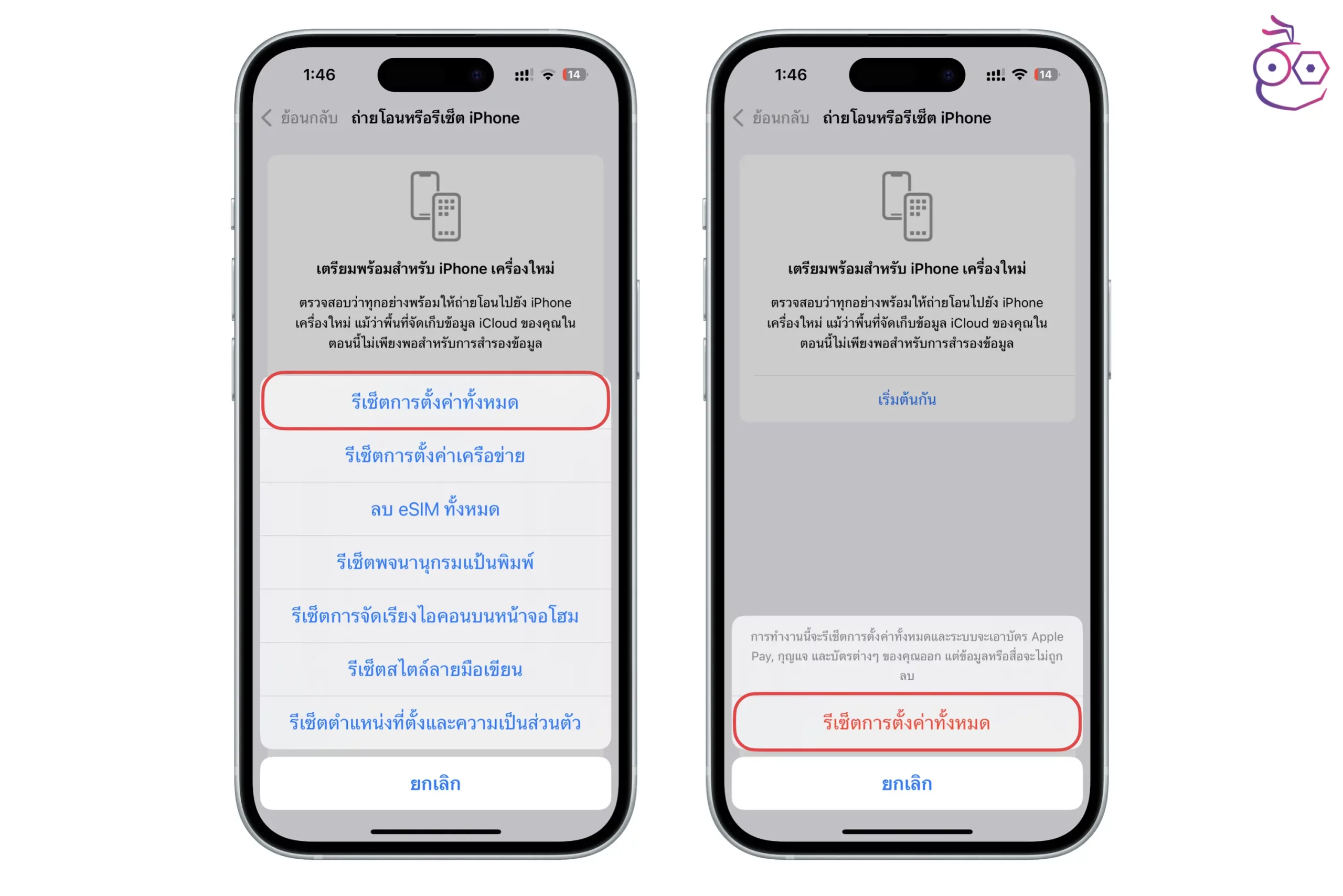 หลังจากที่ทำการอัปเดต iOS 18 ไปแล้ว อาจจะมีคนที่เจอปัญหาเแบตไหล เครื่องใช้งานไม่ปกติ แนะนำให้ทำการรีเซ็ตการตั้งค่า (Reset All Settings) 1 ครั้ง โดยเป็นการรีเซ็ตที่ข้อมูลไม่หาย แต่เราอาจจะต้องตั้งค่าบางอย่างใหม่ เช่น การเชื่อมต่อ Wi-Fi (แต่ถ้าใช้งานปกติไม่ต้องรีเซ็ตก็ได้)