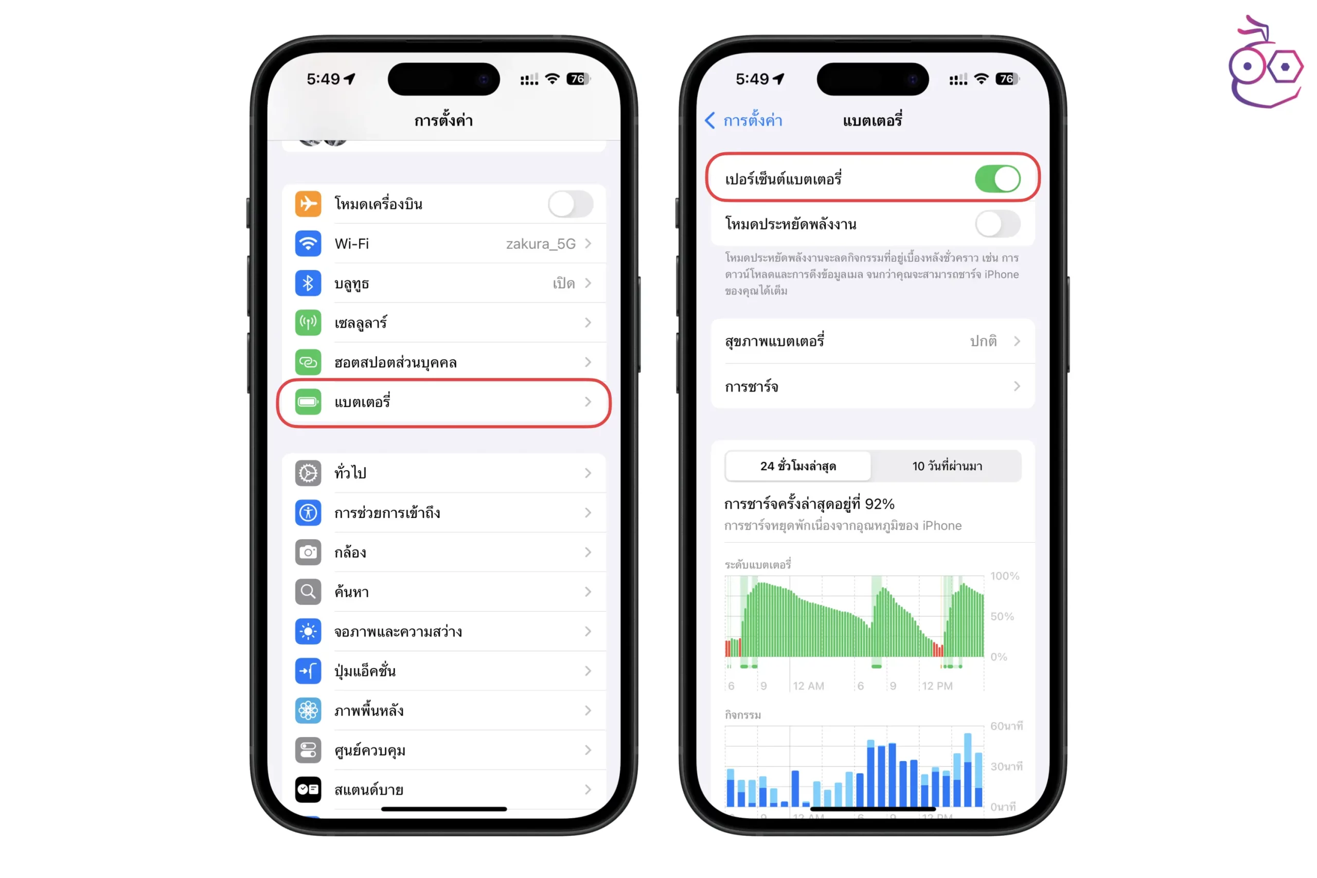 1. ตั้งค่าแสดงเปอร์เซ็นแบตเตอรี่