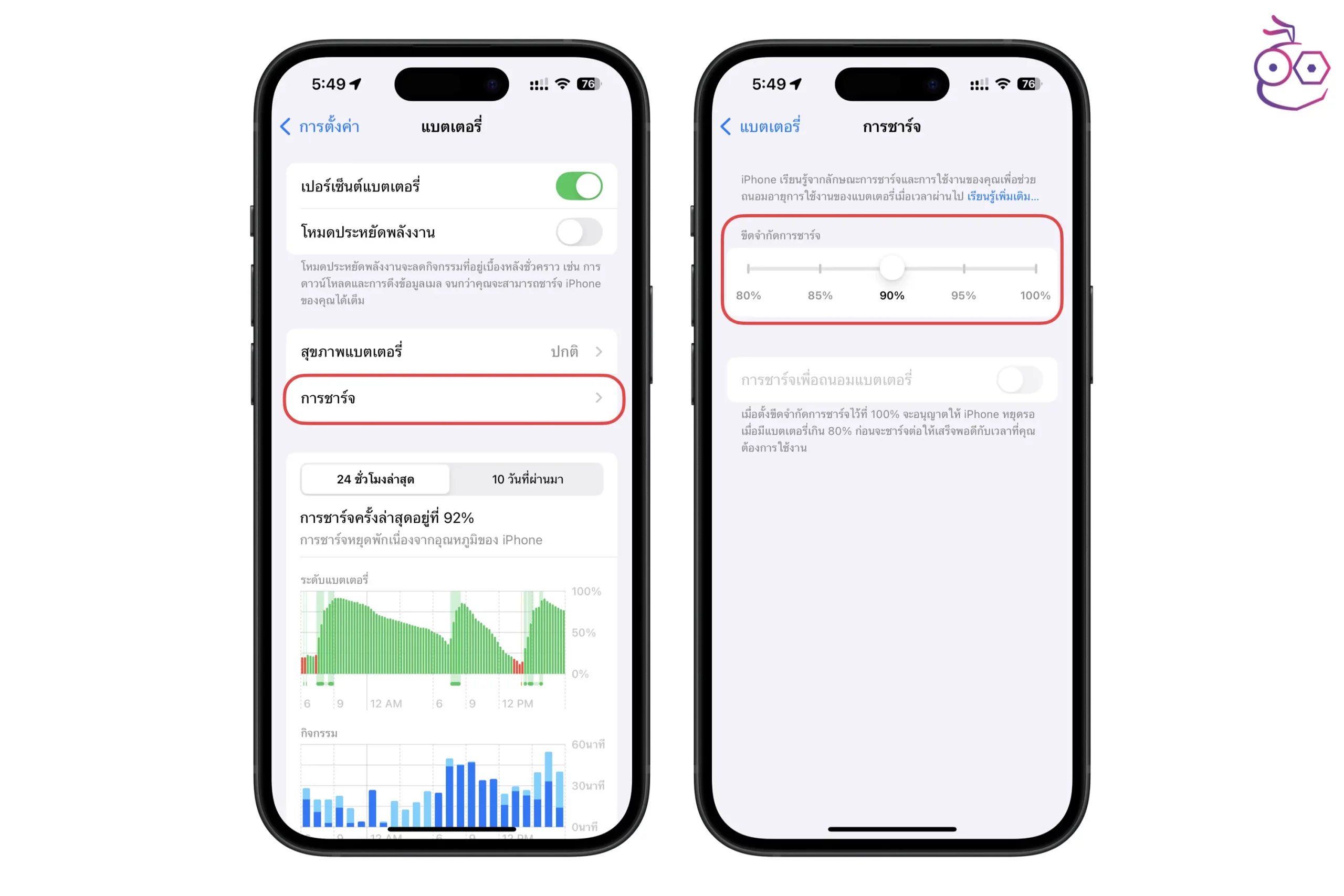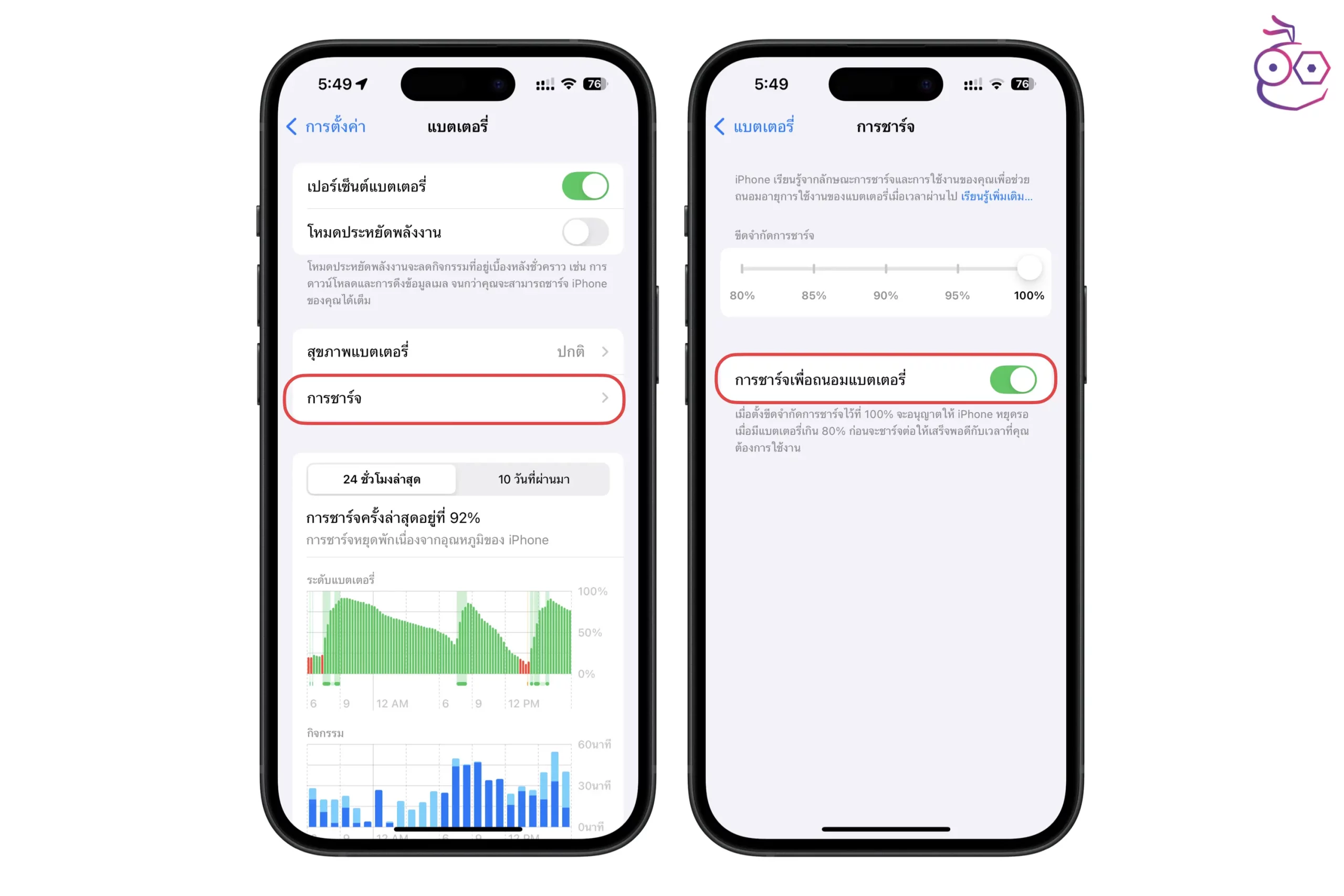 3. ตั้งค่าการชาร์จเพื่อถนอมแบตเตอรี่