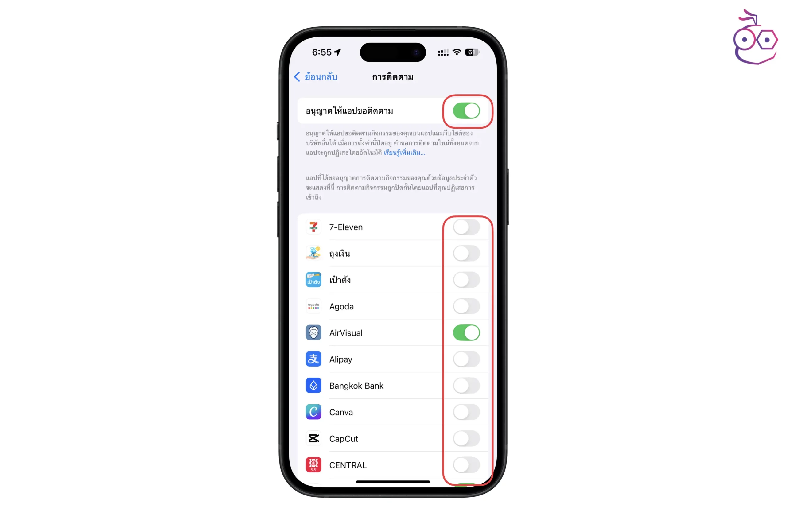 5. ตั้งค่าอนุญาตการติดตามของแอป