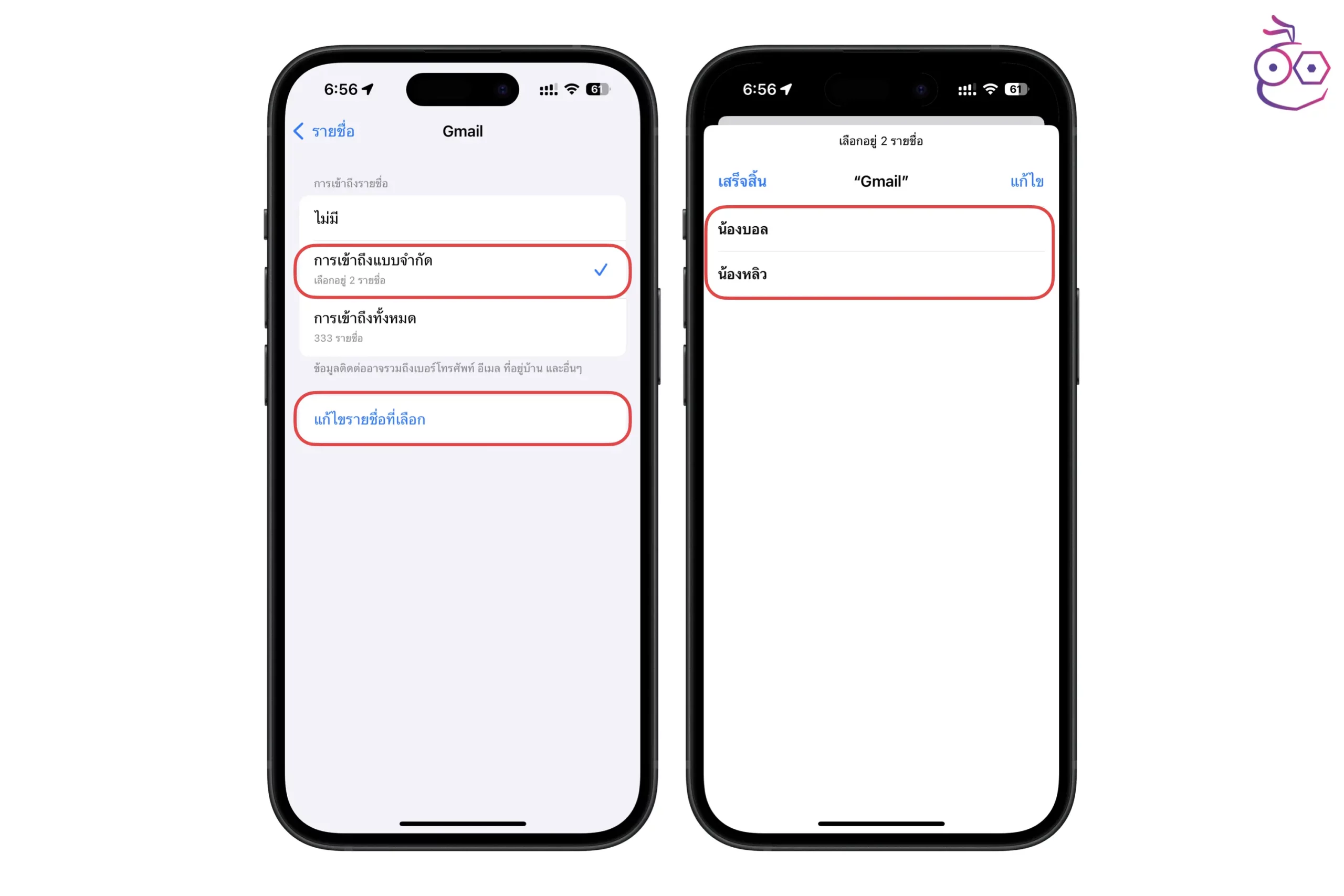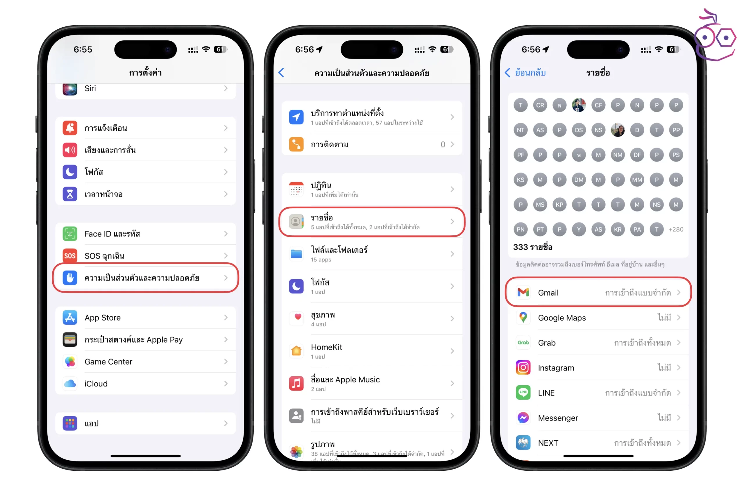 4. ตั้งค่าการเข้าถึงรายชื่อแบบจำกัดในแต่ละแอป