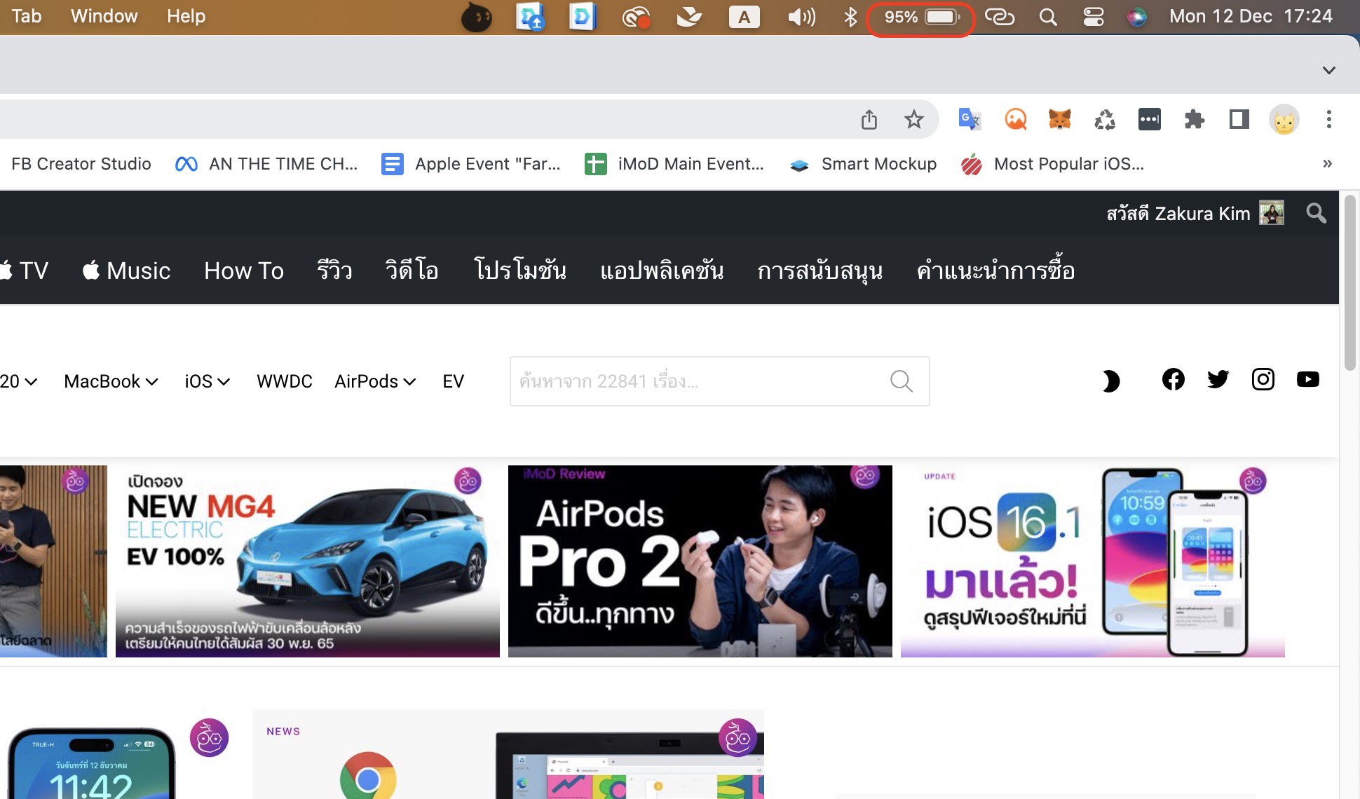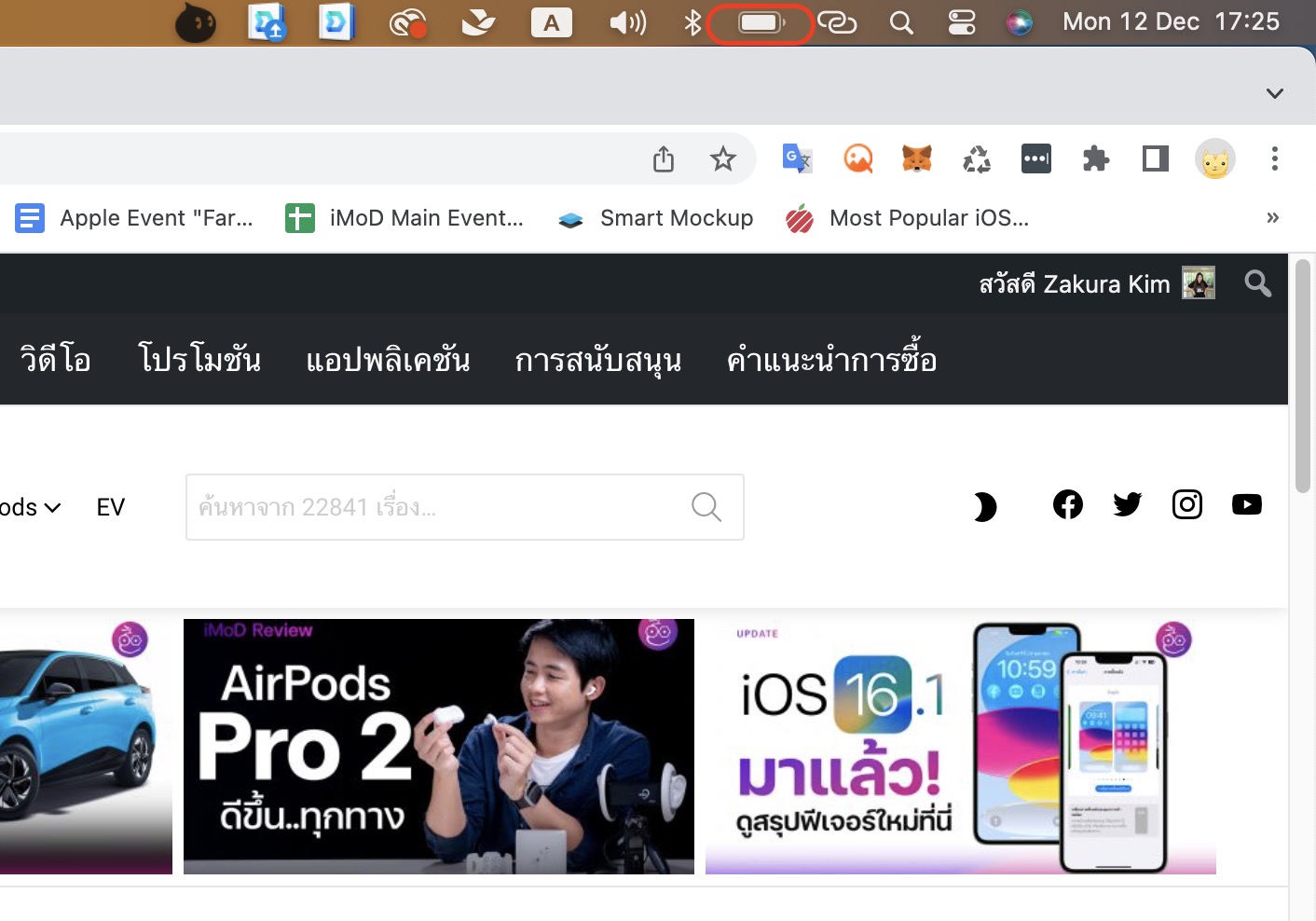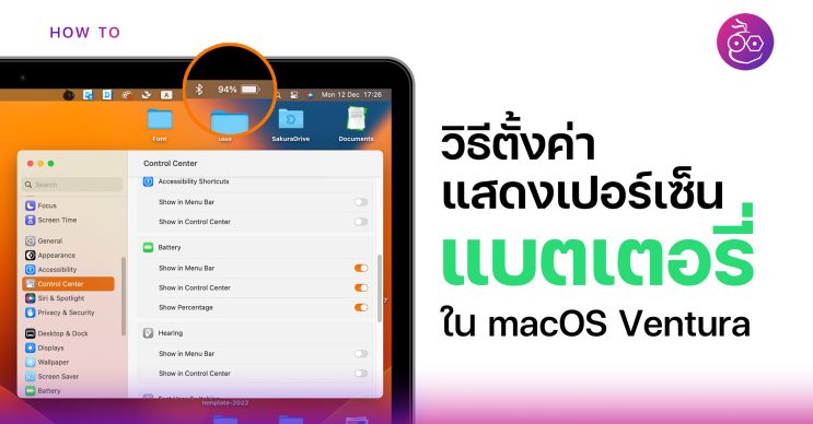 หากใครที่อัปเดต MacBook เป็น macOS Ventura แล้ว ในส่วนของ Menu Bar ด้านบนแสดงเฉพาะรูปไอคอนแบตเตอรี่ แต่ไม่แสดงเปอร์เซ็นแบตเตอรี่คงเหลือ เราสามารถตั้งค่าให้แสดงได้