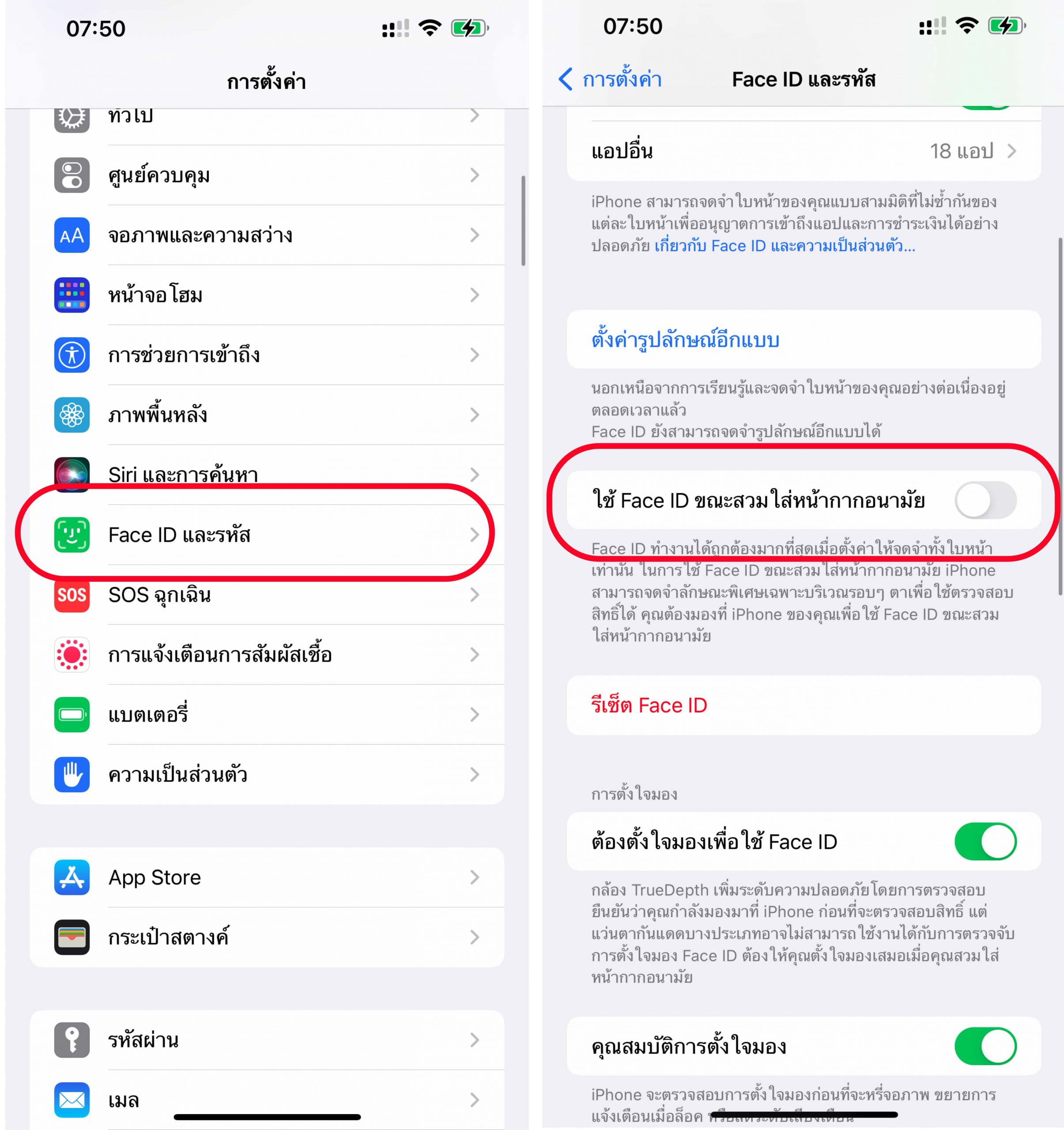 วิธีตั้งค่า ใช้ Face ID ขณะสวมใส่หน้ากากอนามัย