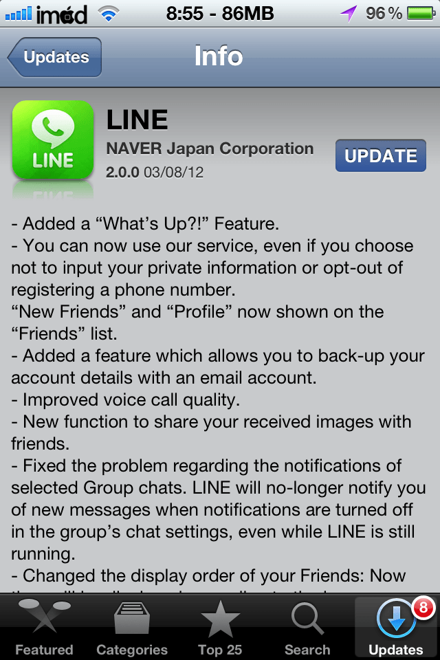 2. Update Line บน iPhone ของคุณให้เป็นเวอร์ชั่นล่าสุด 2.0.0