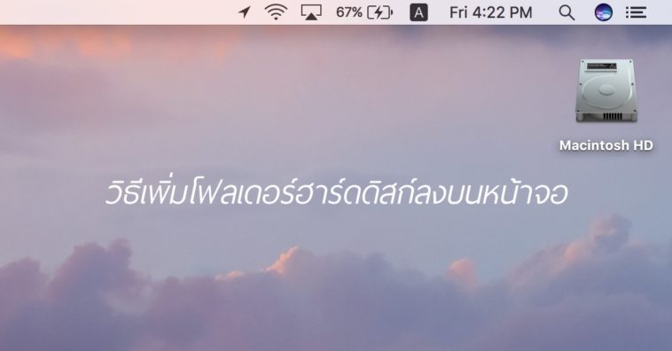 หลังจากซื้อเครื่องแมคใหม่ หลายคนอาจตกใจตอนติดตั้งไม่ว่าจะเป็น วิธีเปลี่ยนภาษาให้เป็น CMD + Space เหมือนเดิม (เดี๋ยวนี้ค่าเริ่มต้นเป็น Caps Lock ในเวอร์ชันใหม่) หรืออะไรต่อมิอะไรก็ตาม และในวันนี้เราจะขอนำเสนอเทคนิคโฟลเดอร์ฮาร์ดดิสก์ (Macintosh HD) ลงหน้าจอ macOS