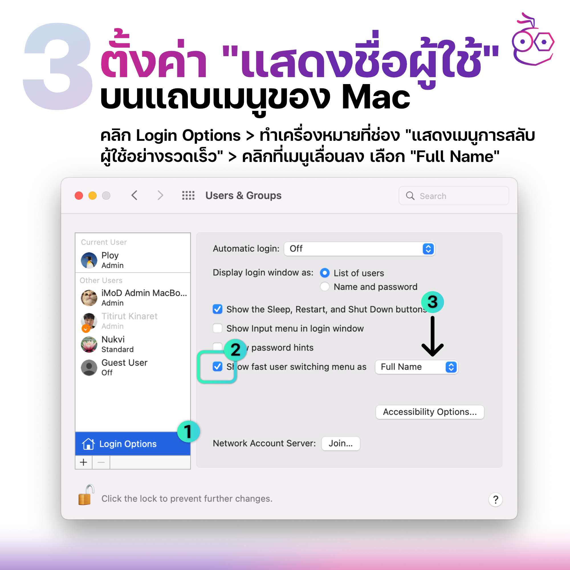 วิธีตั้งค่า “แสดงชื่อผู้ใช้” บนแถบเมนูของ Mac