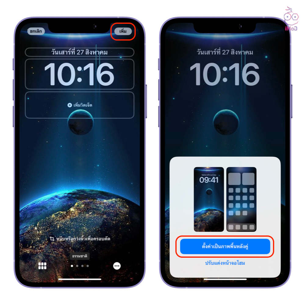 เมื่อตั้งค่าหน้าจอล็อกและเวลาการสุ่มเรียบร้อยแล้ว ให้แตะ เพิ่ม (Add) > แล้วกำหนดเป็นภาพพื้นหลังให้เรียบร้อย