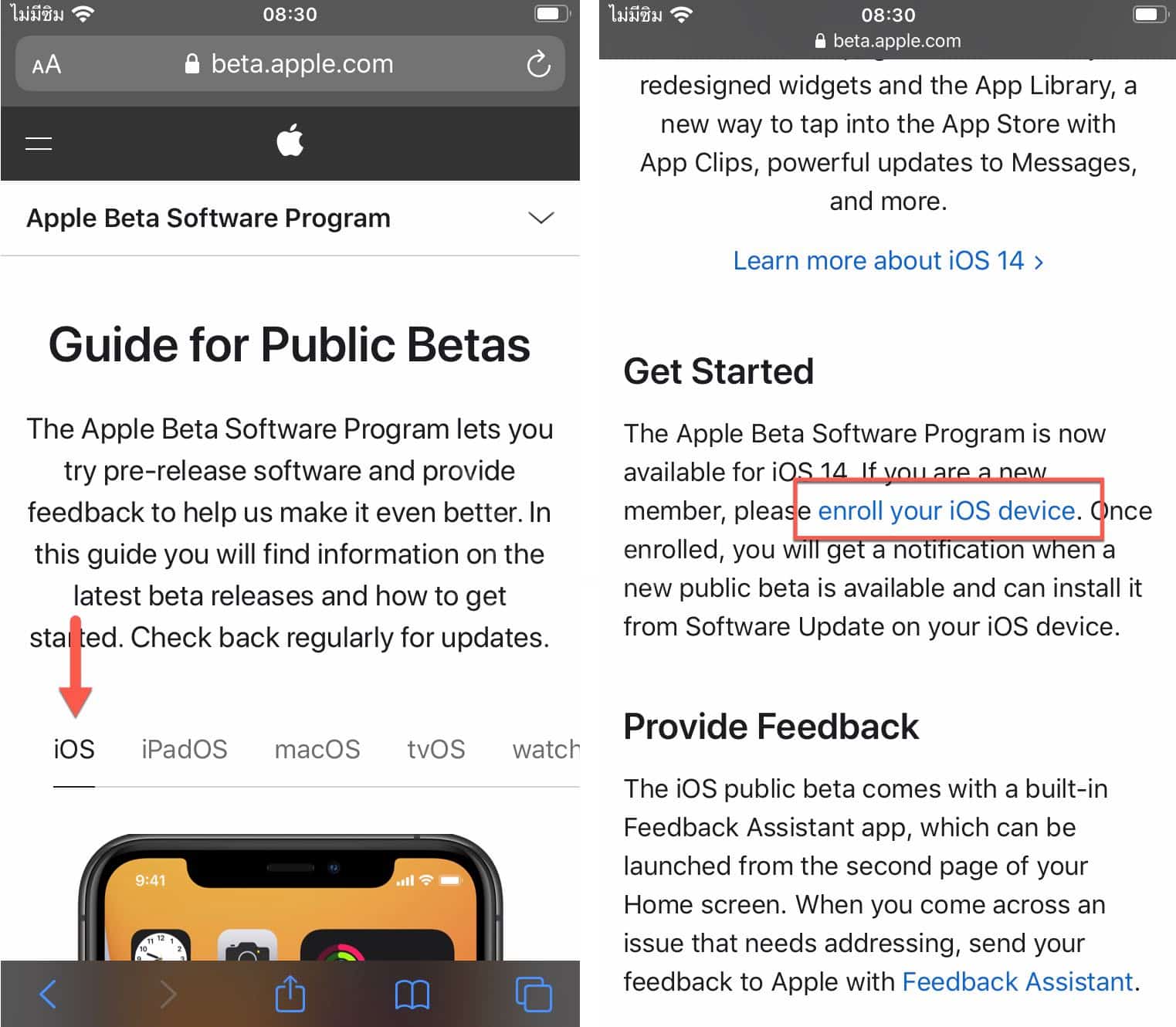 1. ลงทะเบียน iOS 14 Public Beta