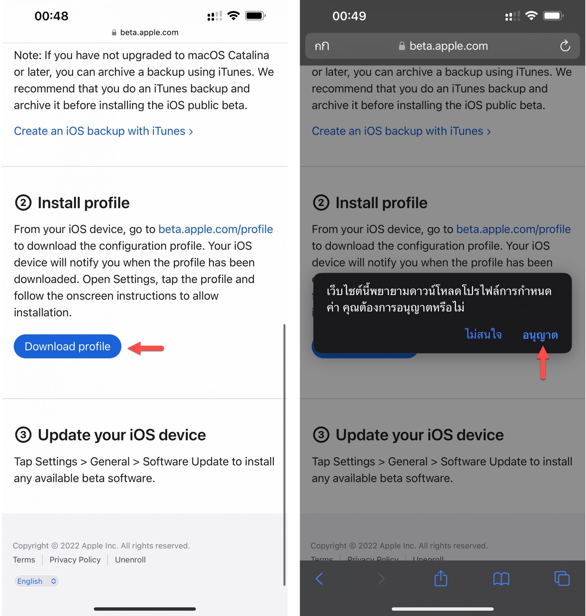 แตะปุ่ม “Download profile” > แตะ “อนุญาต” (Allow)