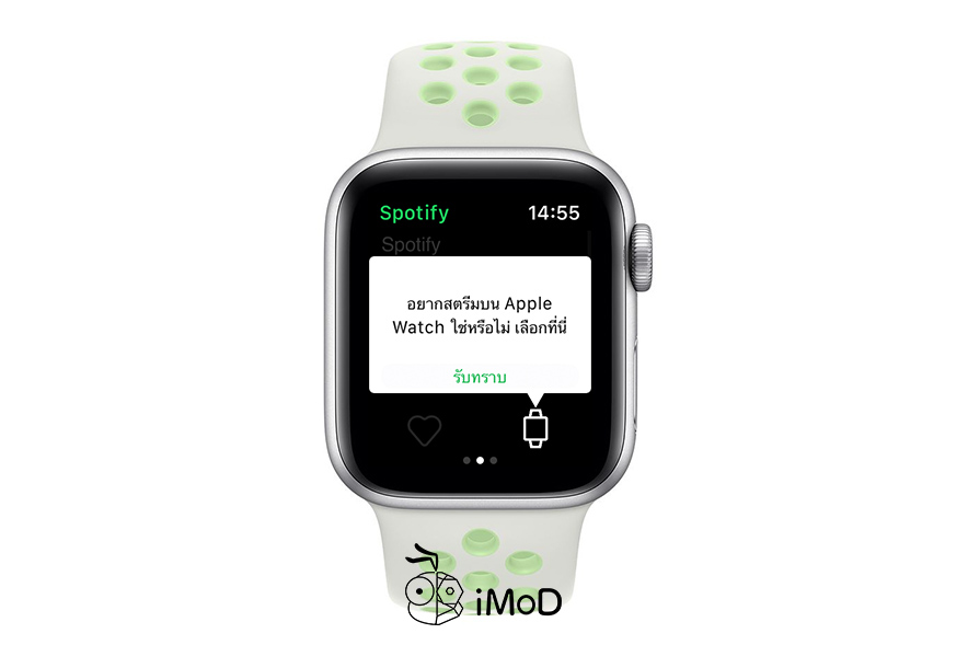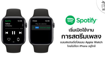 จากที่ทีมงานได้ลองใช้งานการสตรีมเพลง Spotify ดูแล้ว พบว่าในช่วงแรก ๆ ตัวเลือกอุปกรณ์ Apple Watch ยังไม่แสดง ต้องเปิดแอป Spotify บน Apple Watch ไว้สักครู่จนมีการแจ้งเตือนให้สตรีมบน Apple Watch จากนั้นเราก็จะสามารเลือกอุปกรณ์ Apple Watch ได้ ลองดูนะคะ