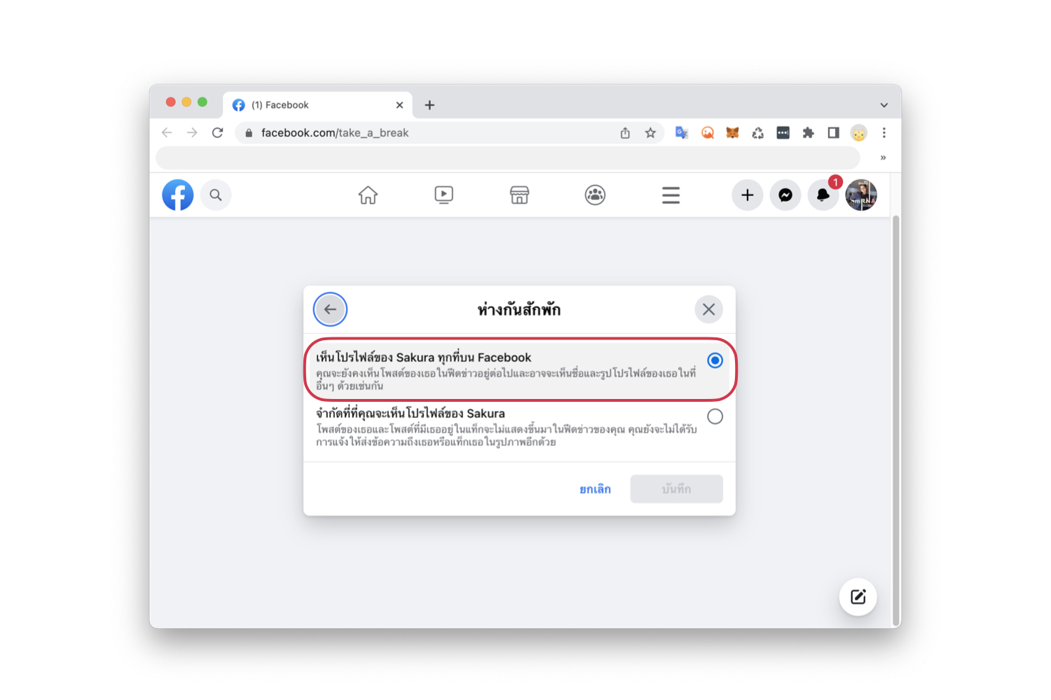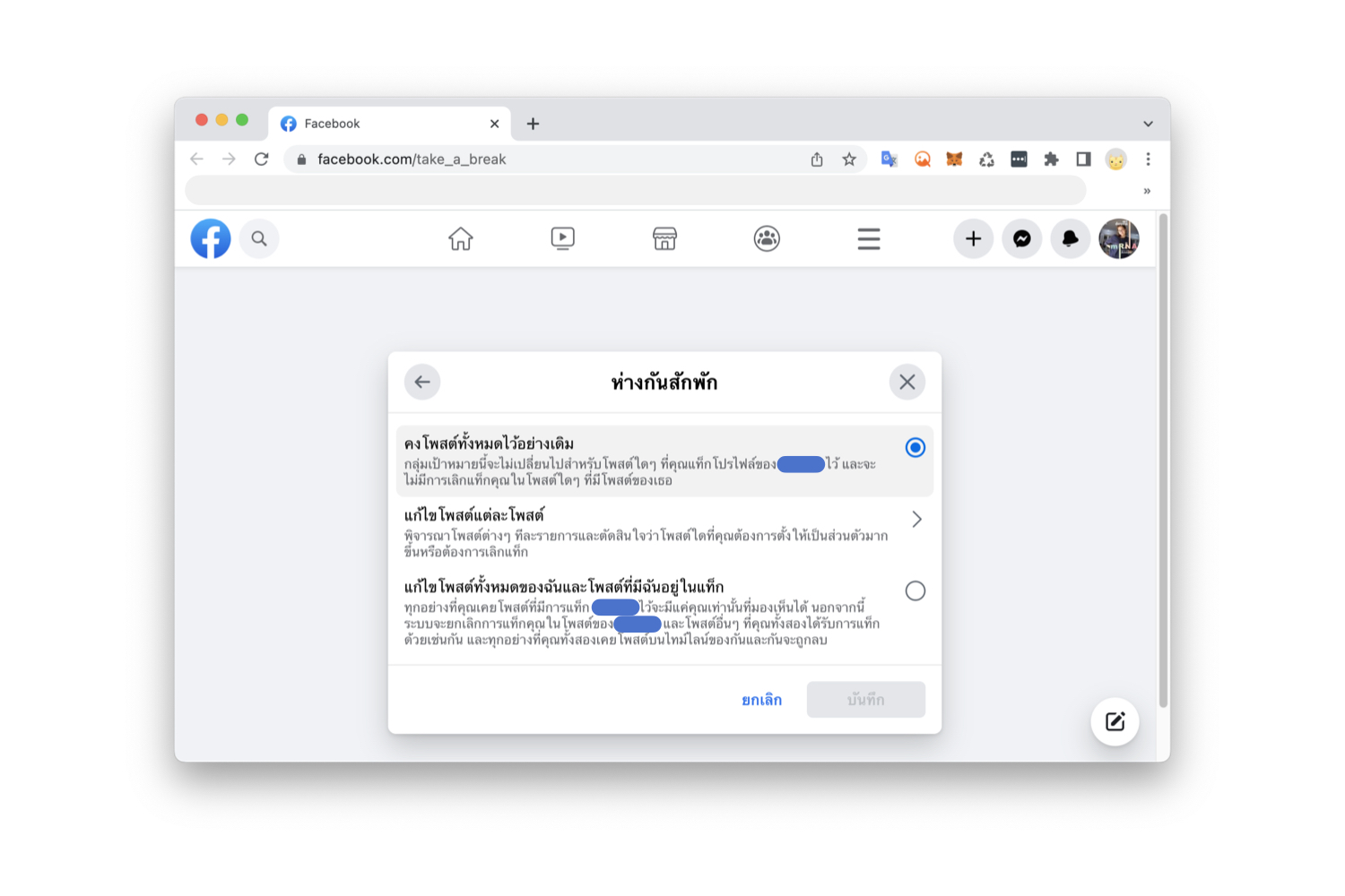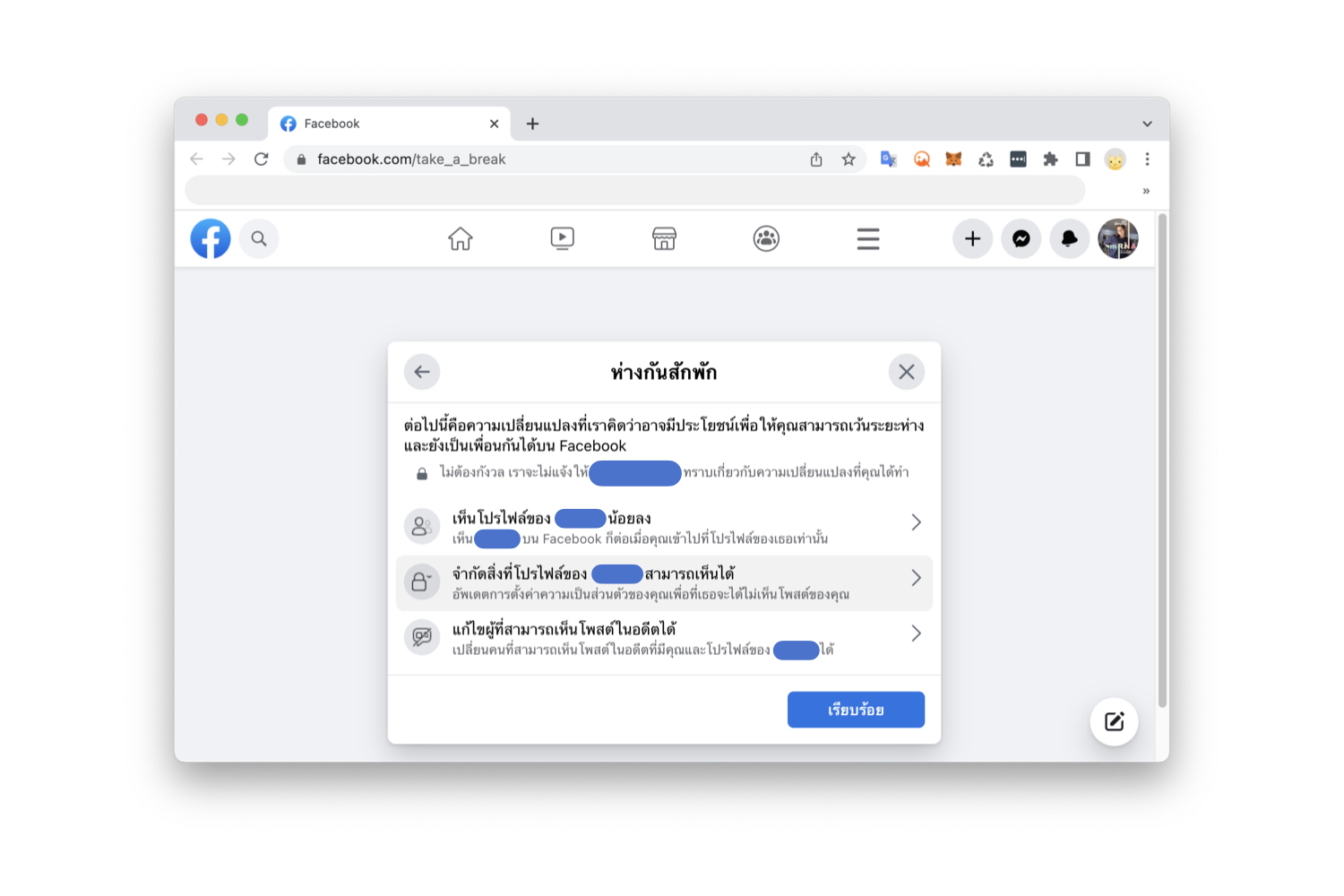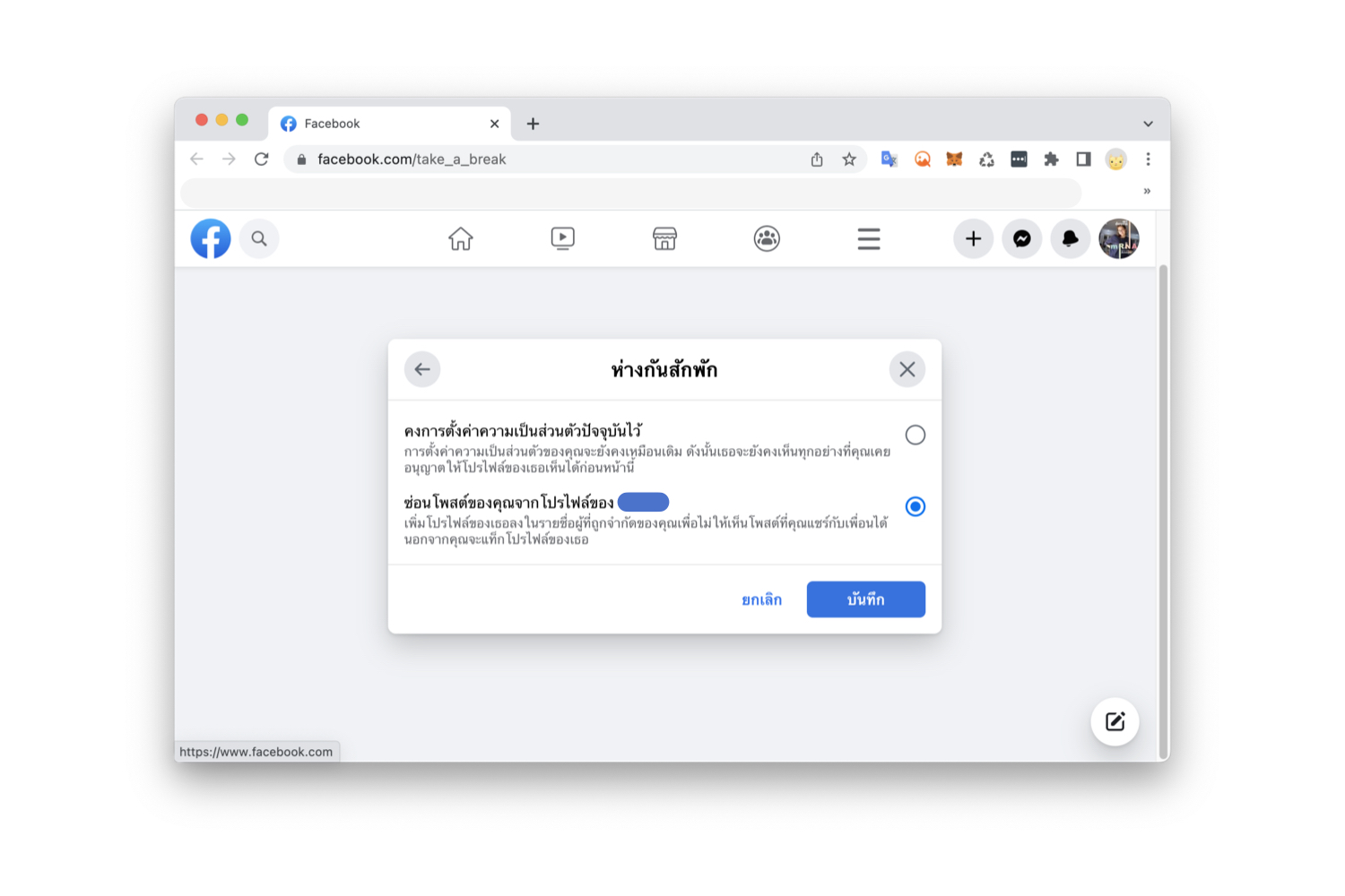วิธีตั้งค่า “ห่างกันสักพัก” ใน Facebook บนคอมพิวเตอร์