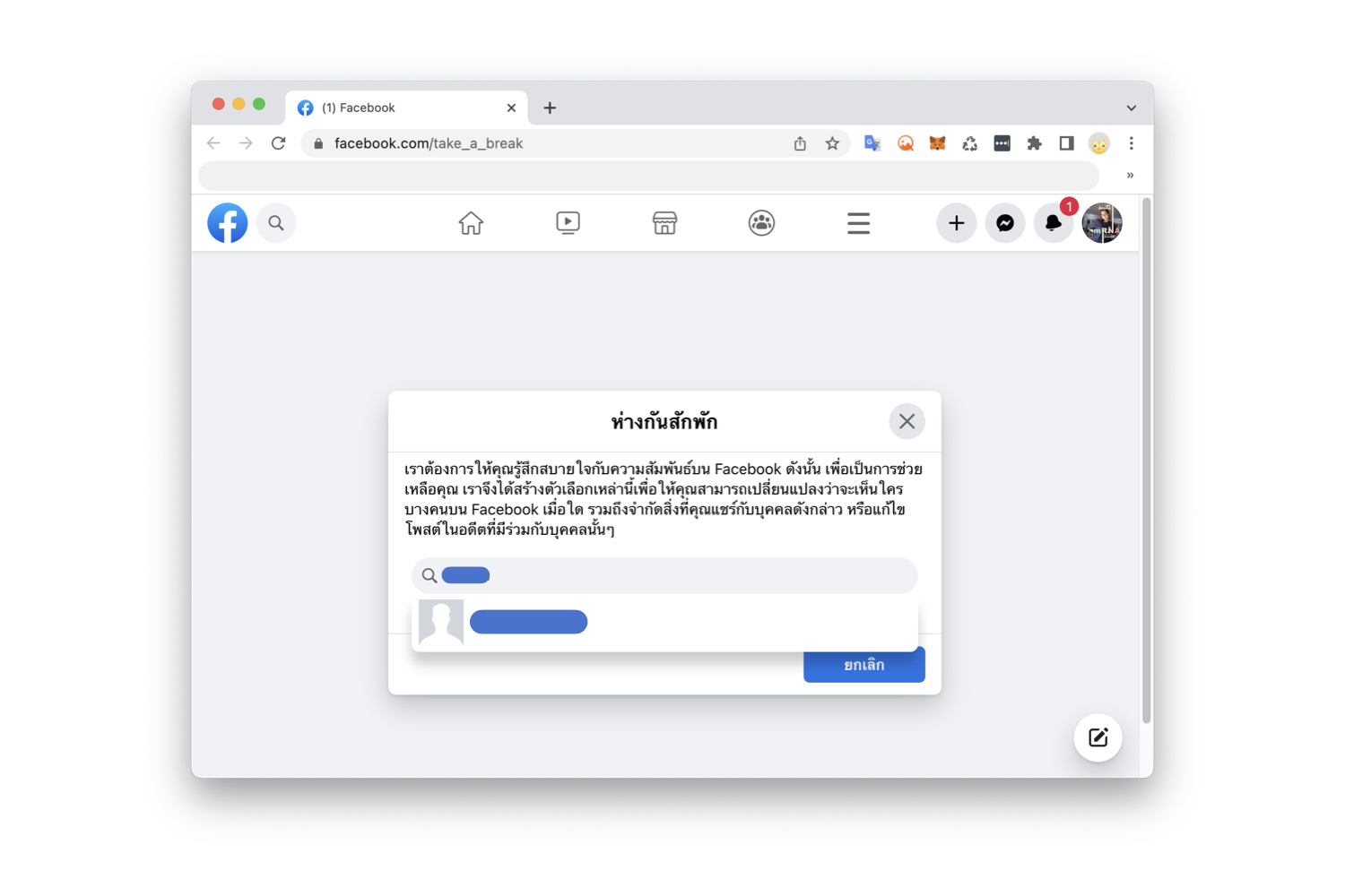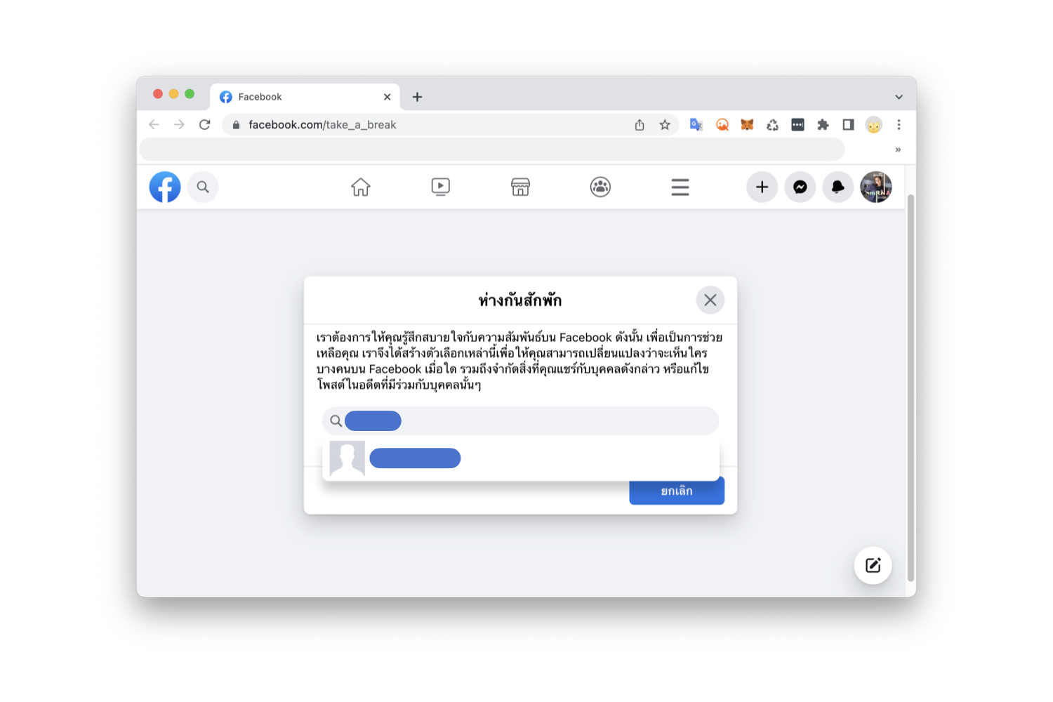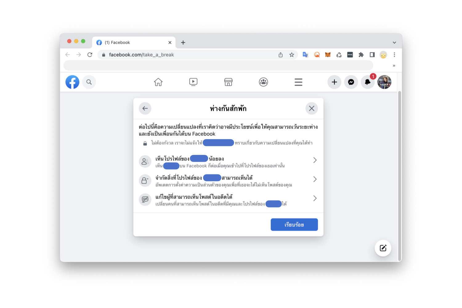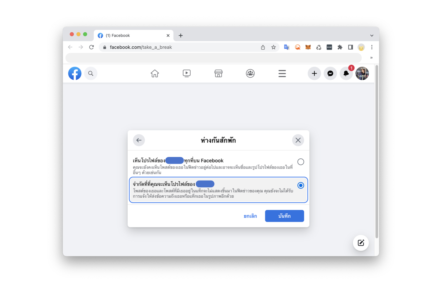 วิธีตั้งค่า “ห่างกันสักพัก” ใน Facebook บนคอมพิวเตอร์