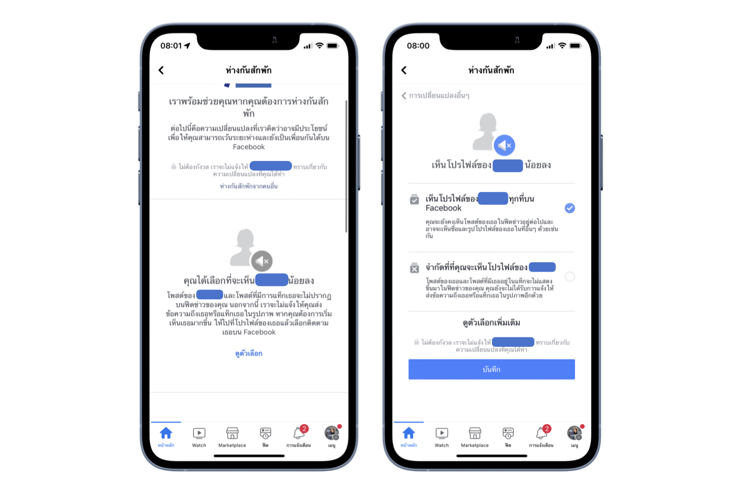 เช่น กลับมาตั้งค่าให้โปรโฟล์ของเพื่อนได้ทุกที่บน Facebook
