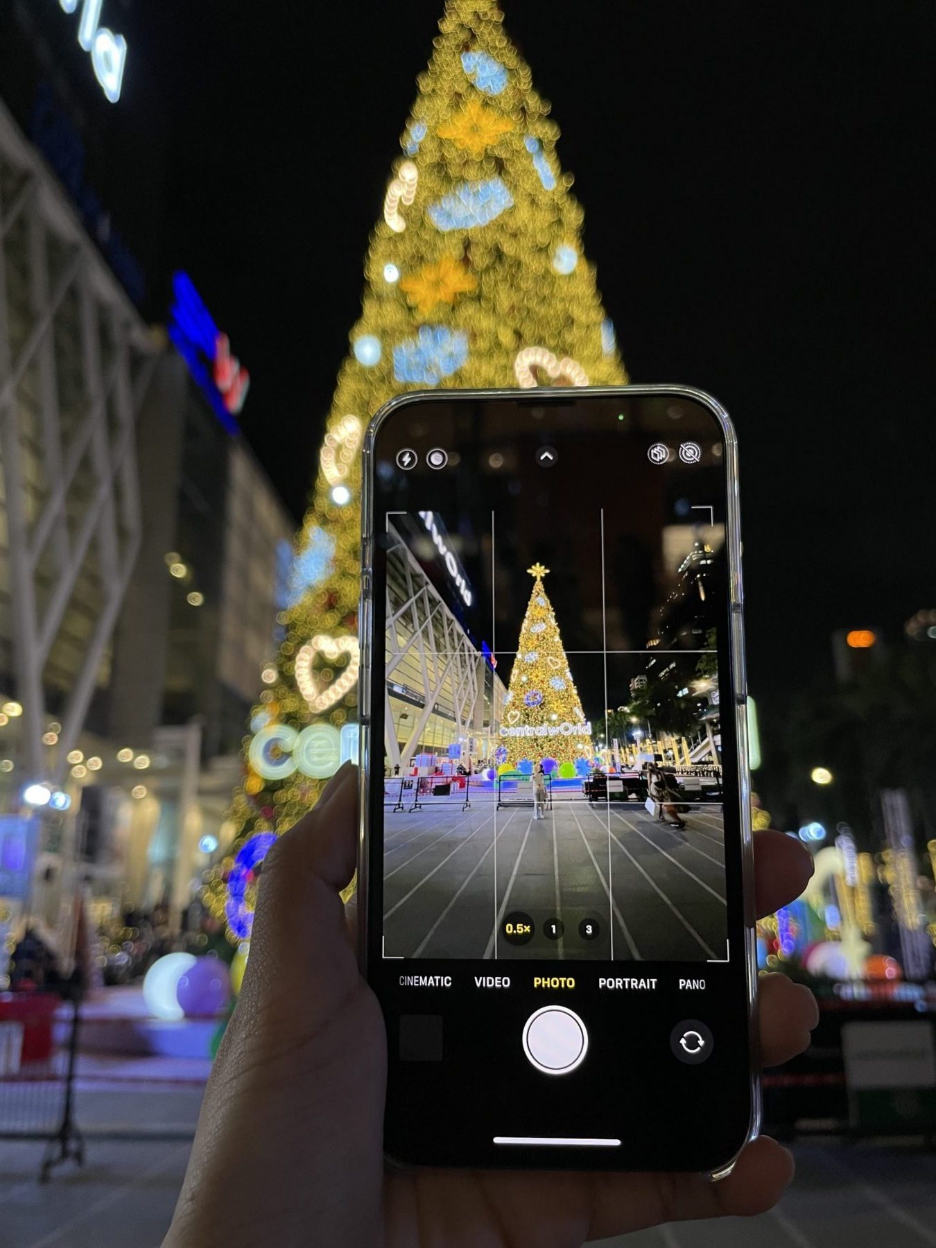 หากต้องการเก็บภาพในมุมกว้างแต่มีพื้นที่จำกัด อาทิ ต้องการถ่ายภาพต้นคริสต์มาสขนาดสูง เราสามารถใช้เลนส์อัลตร้าไวด์หรือ 0.5x เพื่อเก็บภาพได้อย่างง่ายดาย โดยไม่จำเป็นต้องถอยออกมาจากตัวต้น ที่สำคัญบน iPhone 13 Pro และ iPhone 13 Pro Max ยังมาพร้อมคุณสมบัติ “การแก้ไขเลนส์” ที่สามารถแก้ไขขอบภาพที่ถ่ายด้วยกล้องอัลตร้าไวด์ได้อย่างชาญฉลาดเพื่อให้ภาพดูเป็นธรรมชาติ ที่สำคัญเลนส์นี้ยังรองรับโหมดกลางคืนอีกด้วย