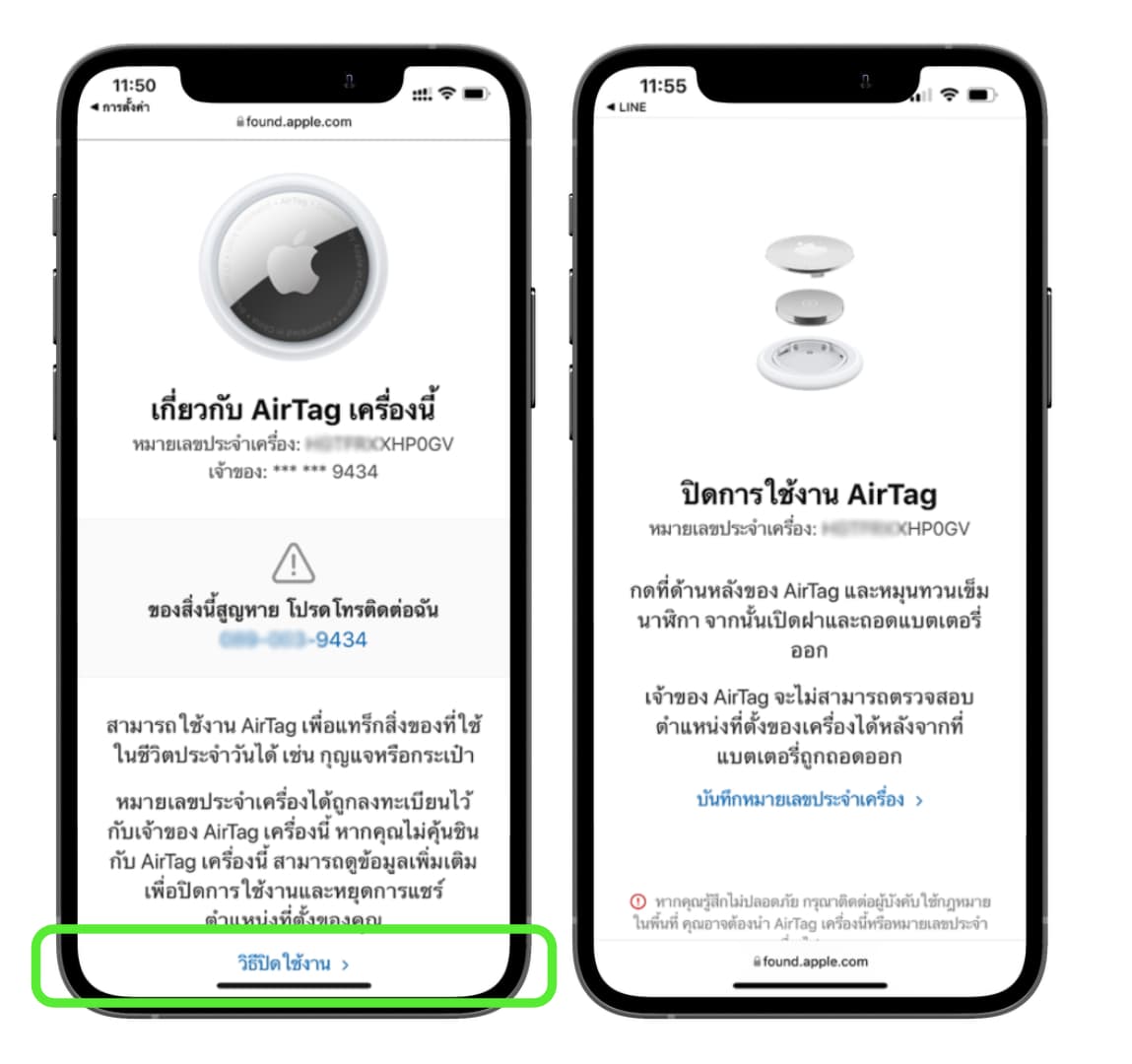 เมื่อเราพบ AirTag ที่ไม่ใช่ของเรา แล้วเราอยากจะติดต่อเจ้าของเพื่อส่งคืน หากเจ้าของ AirTag เปิดโหมดสูญหายเอาไว้ สามารถทำตามดังนี้ได้เลย