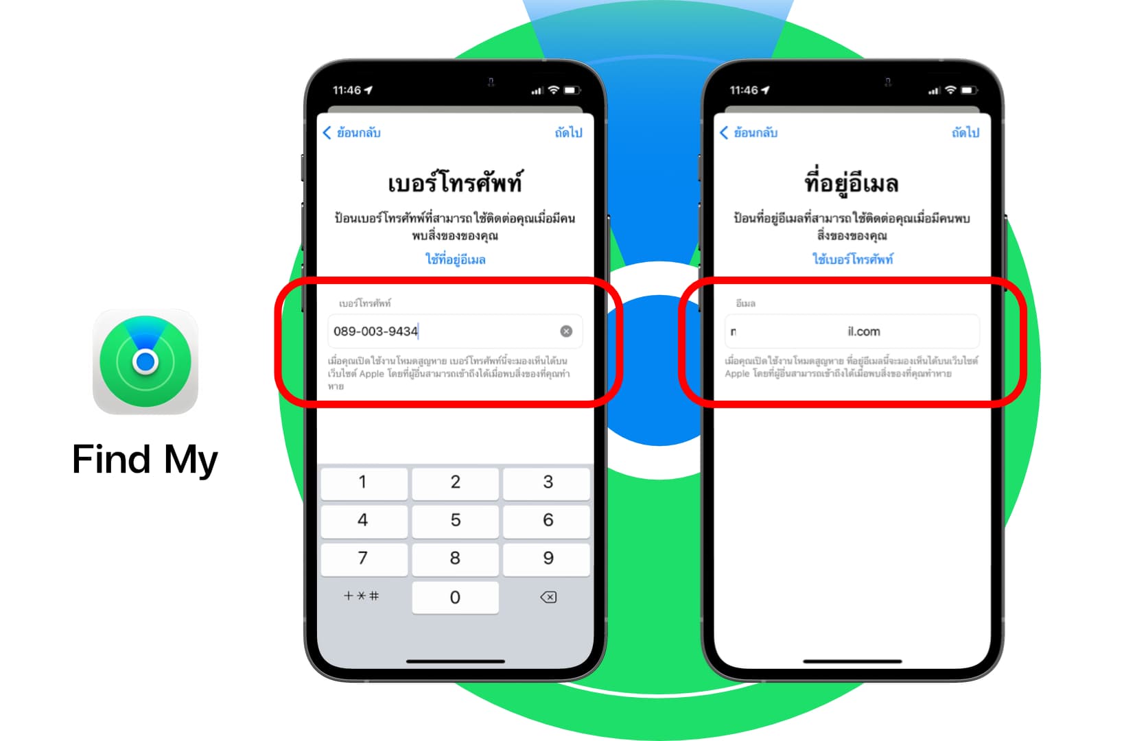 ใส่เบอร์โทรศัพท์ หรือจะเลือกใส่ที่อยู่อีเมล เพื่อใช้ในการติดต่อกับเราที่เป็นเจ้าของ > จากนั้นกด ถัดไป