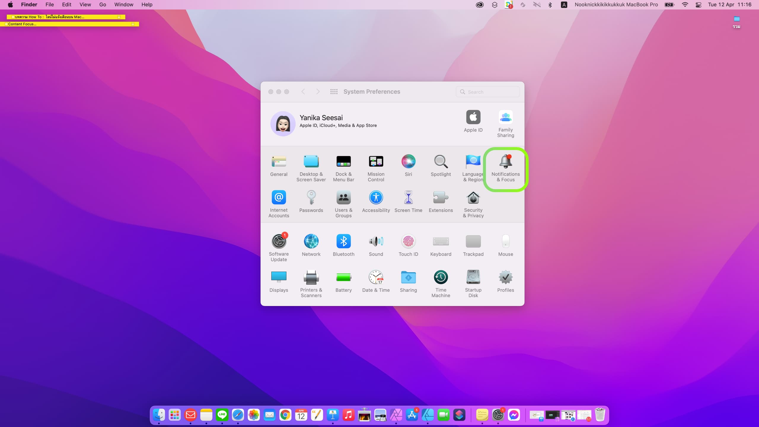 - เข้าไปที่ System Preferences > Notifications & Focus