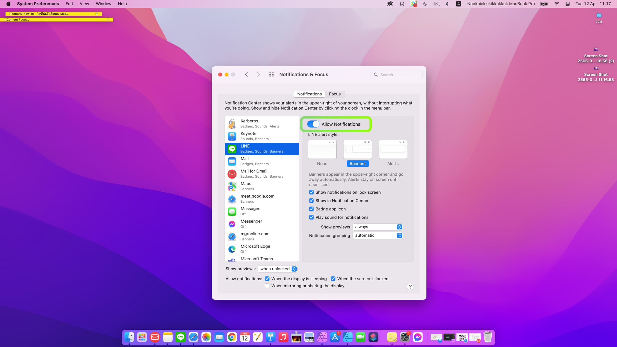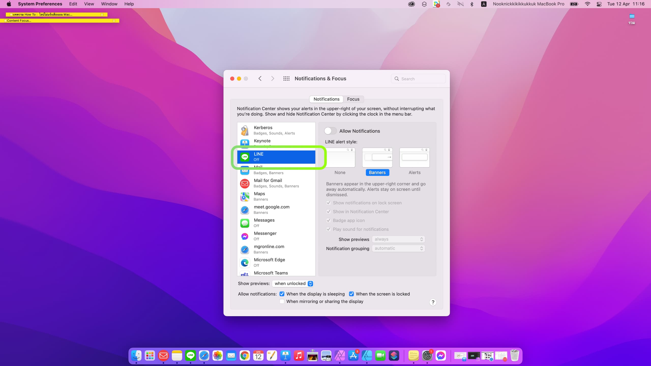 ตั้งค่าให้ LINE แสดงการแจ้งเตือนบน Mac