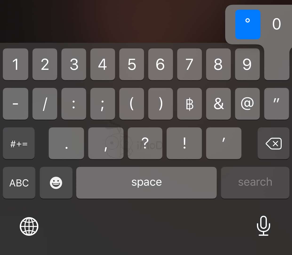 สำหรับเครื่องหมายองศา (°) ให้แตะที่เลข 0 บนคีย์บอร์ดค้างไว้แล้วเลือก °
