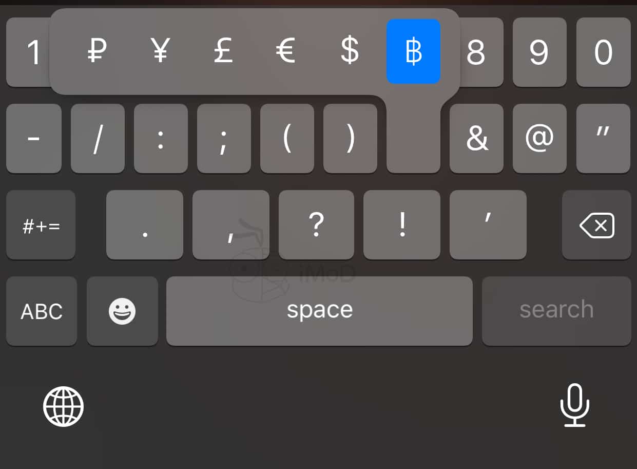 เราสามารถเลือกเครื่องหมายสกุลเงินต่าง ๆ ที่คีย์บอร์ดได้โดยแตะที่ ฿ ค้างไว้แล้วเลือกได้เลย