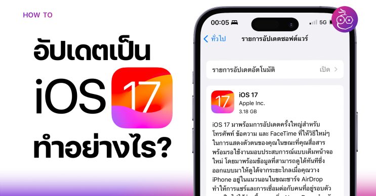 สำหรับการอัปเดตเป็น iOS 17 นั้นทำได้ 2 วิธี คือ การอัปเดตผ่าน Software Update แบบ OTA และการอัปเดตผ่านคอมพิวเตอร์, Mac