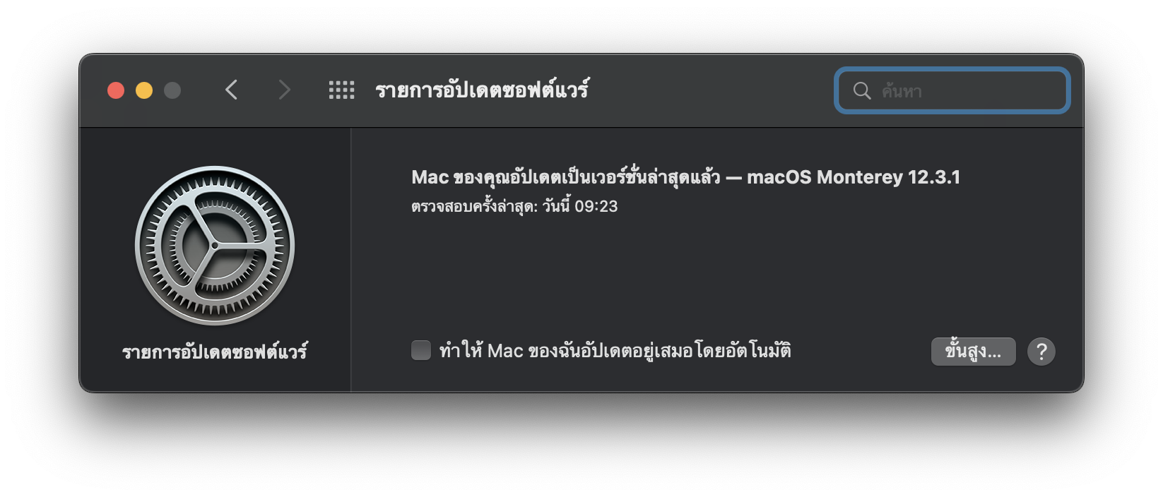 คลิกเมนู Apple บนซ้ายของจอ > คลิก “การตั้งค่าระบบ” > คลิก “รายการอัปเดตซอฟต์แวร์” หากมีรายการอัปเดต Firmware จะแสดงผลในหน้าต่างนี้ ดาวน์โหลดและอัปเดตได้เลย