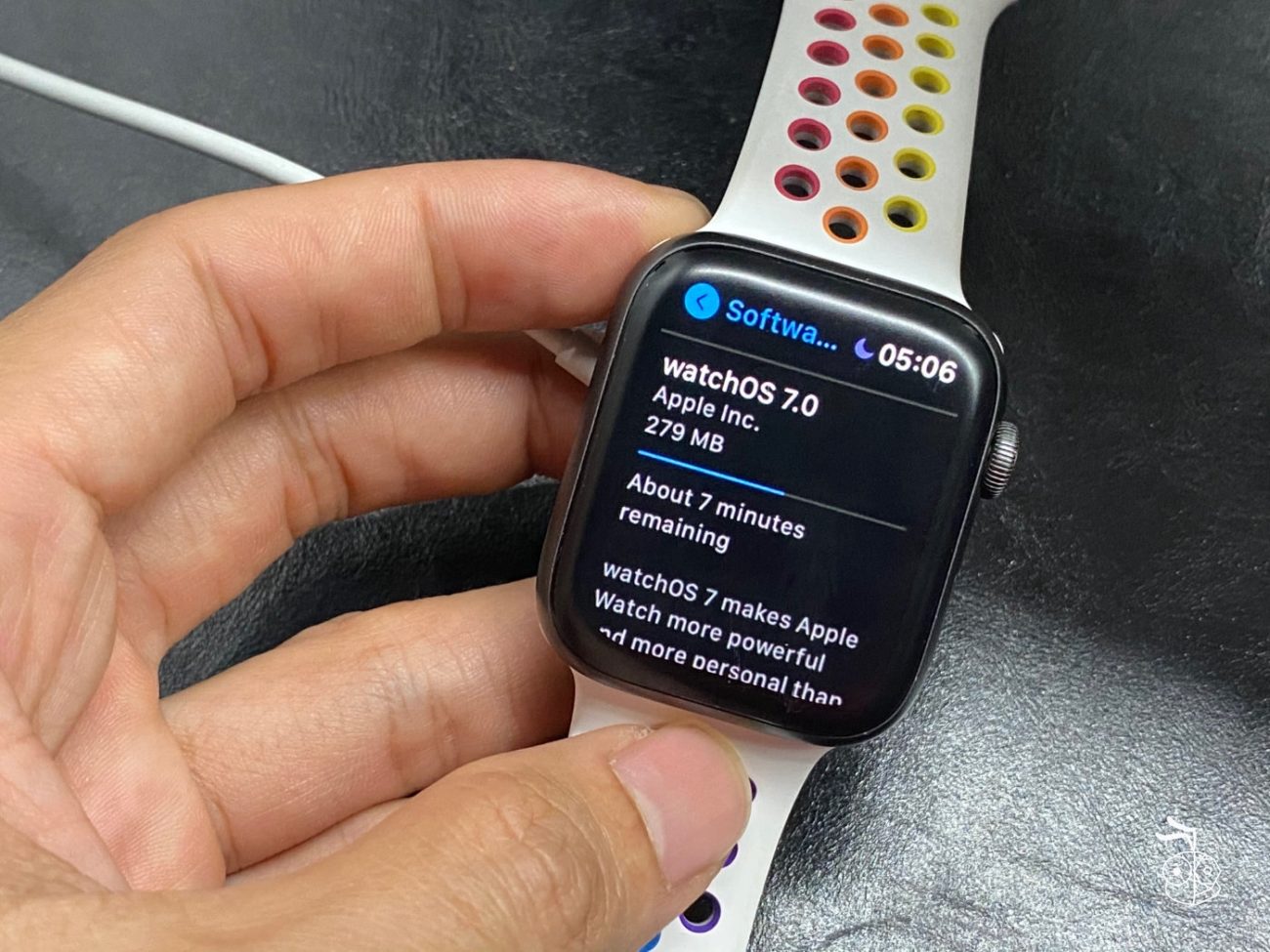 สำคัญ ระหว่างที่ Apple Watch ทำการติดตั้ง watchOS 7 ไม่ควรนำ Apple Watch ออกจากแท่นชาร์จเด็ดขาด เนื่องจากการติดตั้งอาจจะใช้เวลานานและใช้พลังงานแบตเตอรี่ค่อนข้างมาก ควรรอให้การติดตั้งเสร็จเรียบร้อยก่อน ถึงจะนำออกจากแท่นชาร์จได้ และควรวาง iPhone ให้อยู่ในระยะที่ใกล้กับ Apple Watch เสมอ