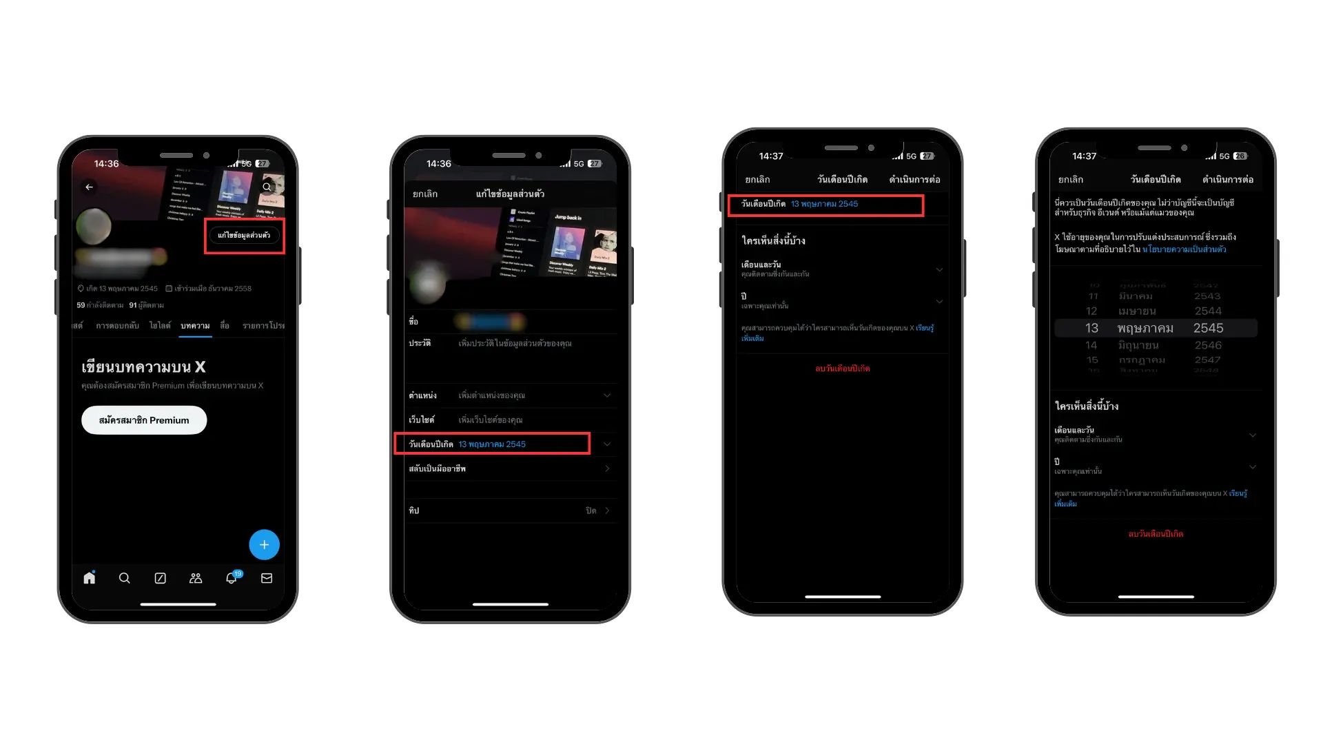 4. แตะในหัวข้อ วันเกิด กดแก้ไข และเพิ่มวัน เดือน และปีเกิดใหม่ของคุณ