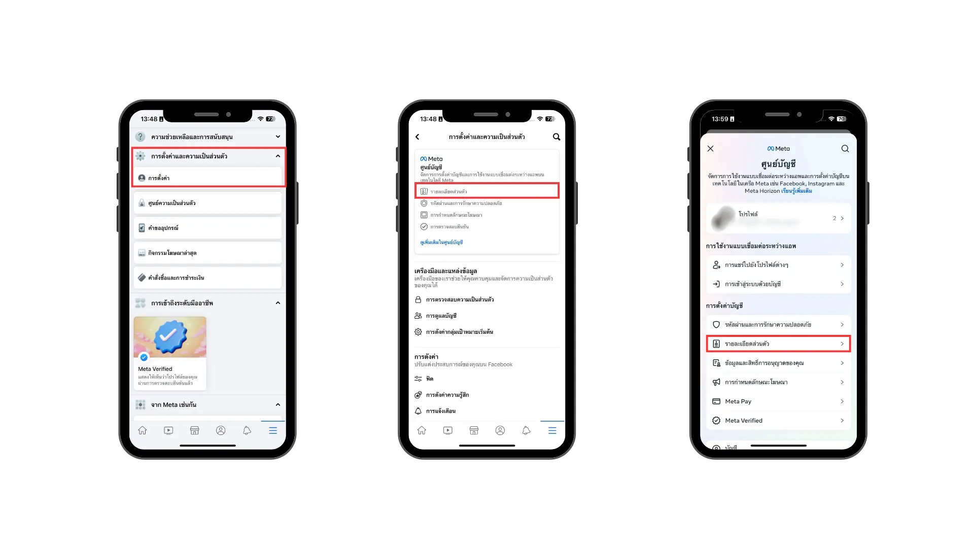 3. เลือกหัวข้อรายละเอียดส่วนตัวบนหน้าจอศูนย์บัญชี Meta