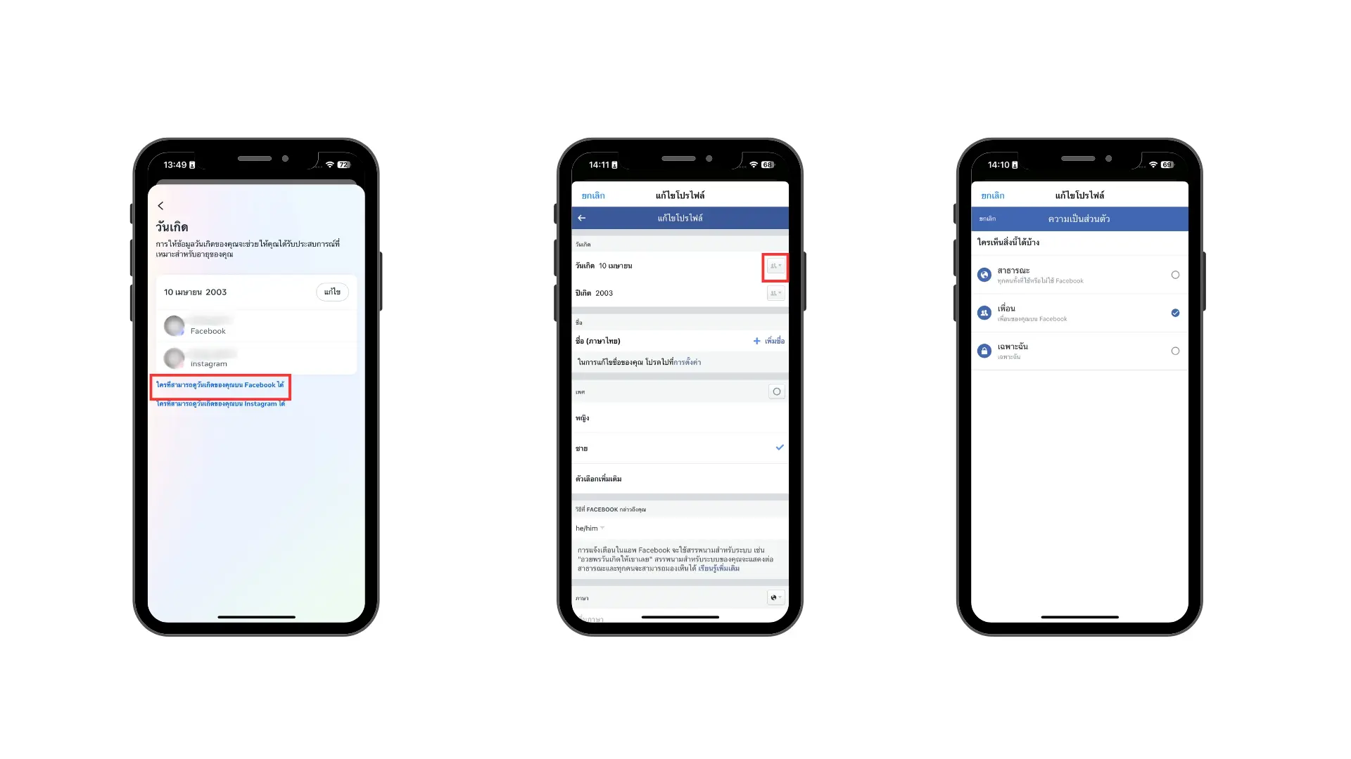 6. นอกจากนี้ ยังสามารถตั้งค่าให้ใครสามารถเห็นวันเกิดของเราบน Facebook เปลี่ยนการมองเห็นเป็นสาธารณะ เพื่อน หรือ เฉพาะฉัน