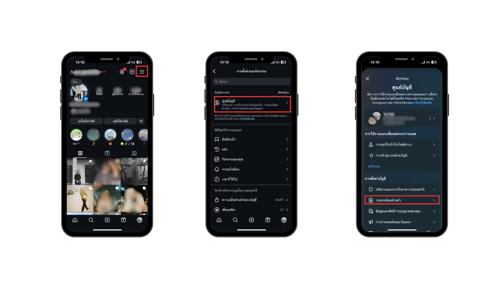 2. แตะรายละเอียดส่วนบุคคลในกล่องศูนย์บัญชี Meta