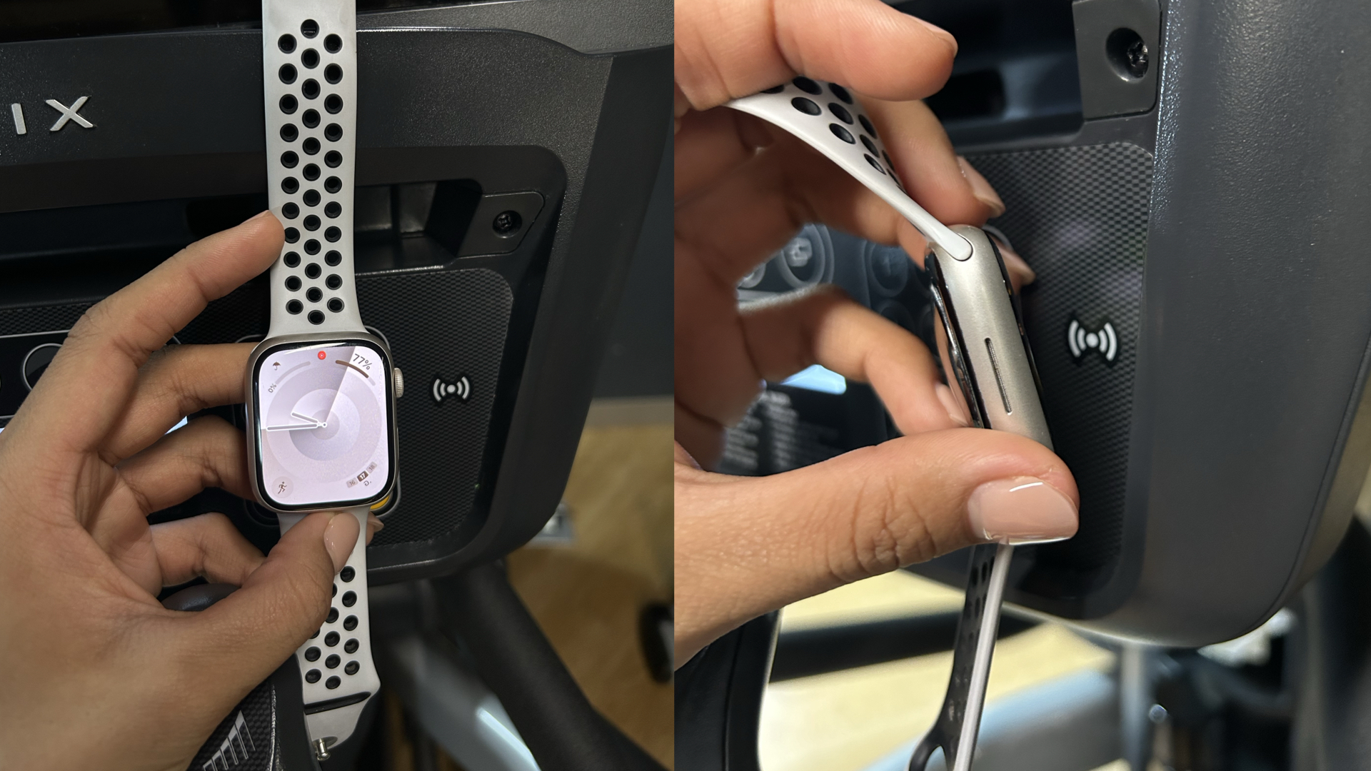 เราสามารถเชื่อมต่อ Apple Watch กับเครื่องออกกำลังกายผ่าน Apple GymKit ได้ง่ายๆ เพียงแค่มองหาเครื่องออกกำลังกายที่มีสัญลักษณ์ Apple Watch และสัญลักษณ์ Apple GymKit ตามภาพด้านล่าง