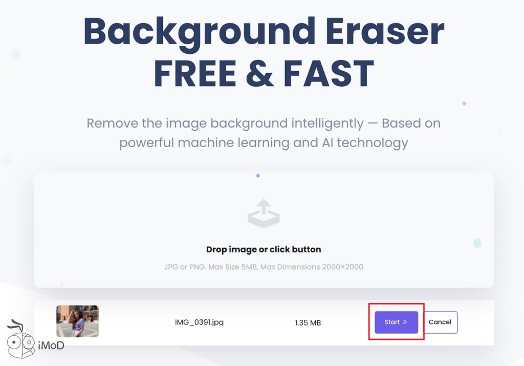 วิธีการทำก็ง่าย ๆ เพียงเข้าสู่เว็บไซต์ https://bgeraser.com อัปโหลดรูปภาพเข้าไป โดยภาพที่อัปโหลดต้องเป็นภาพ PNG หรือ JPG ที่มีขนาดไม่เกิน 2MB (ไม่เกิน 700 x 700px) พิกเซลสำหรับผู้ที่ไม่ใช่สมาชิก แต่ถ้าสมัครสมาชิกจะอัปโหลดภาพขนาดไม่เกิน 5MB (ไม่เกิน 2000 x 2000px)
