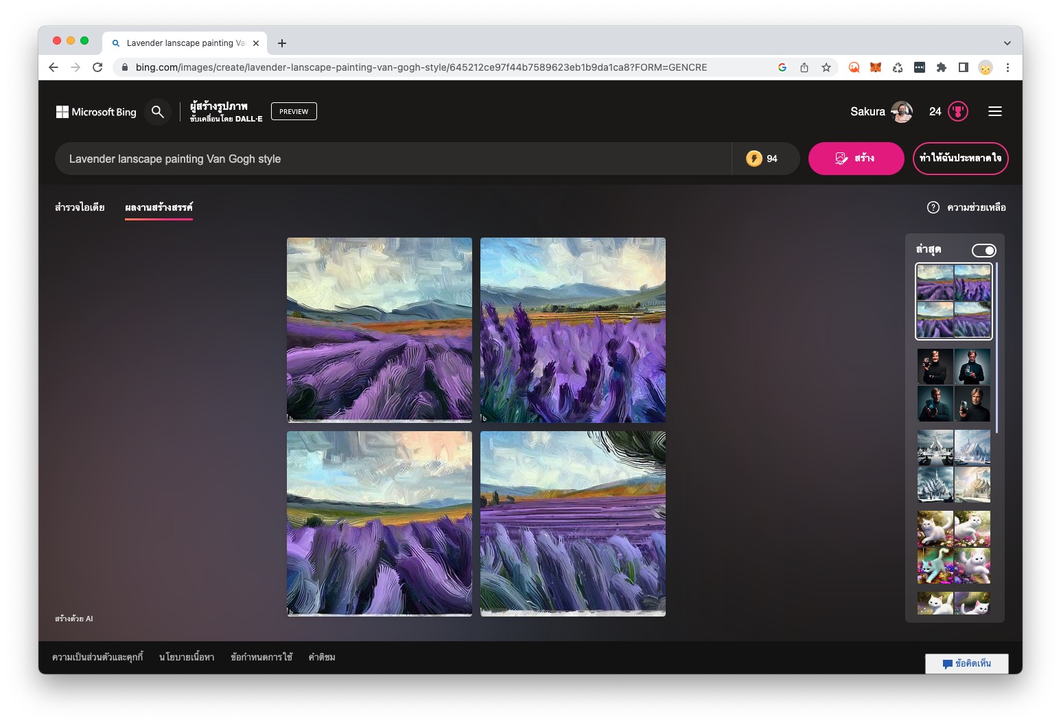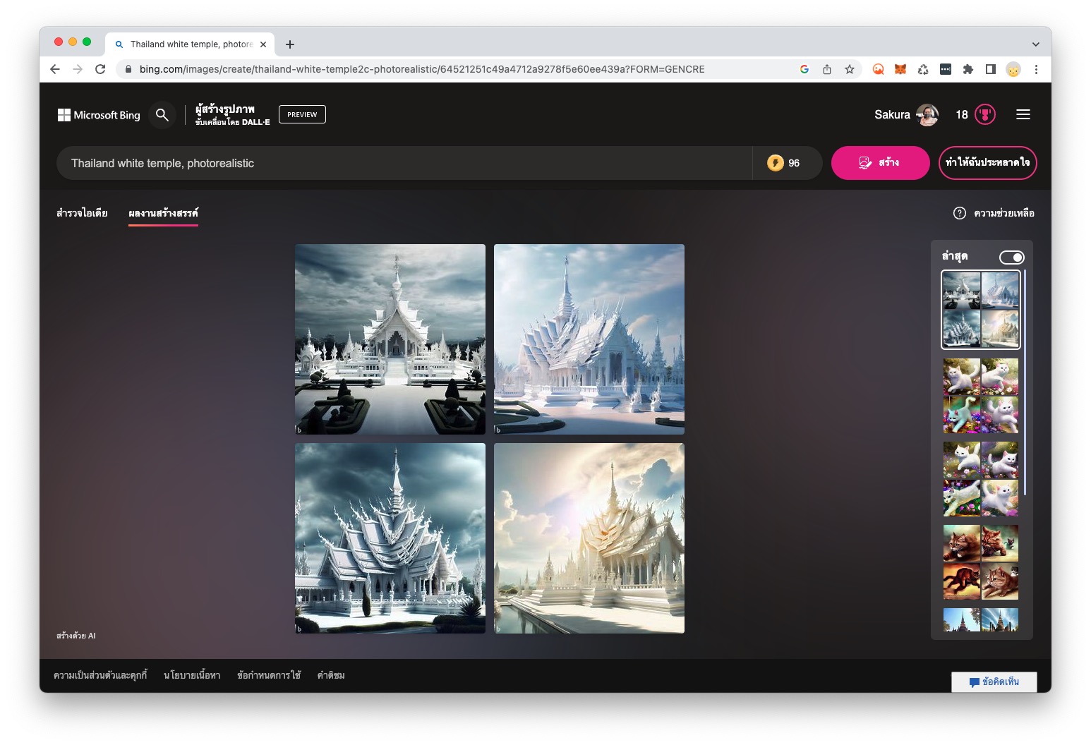 Bing Image Creator ก็จะแสดงรูปภาพที่ Generate จากคำอธิบายของเรา โดยมีหลายรูปภาพให้เลือก เลือกรูปภาพที่ต้องการ