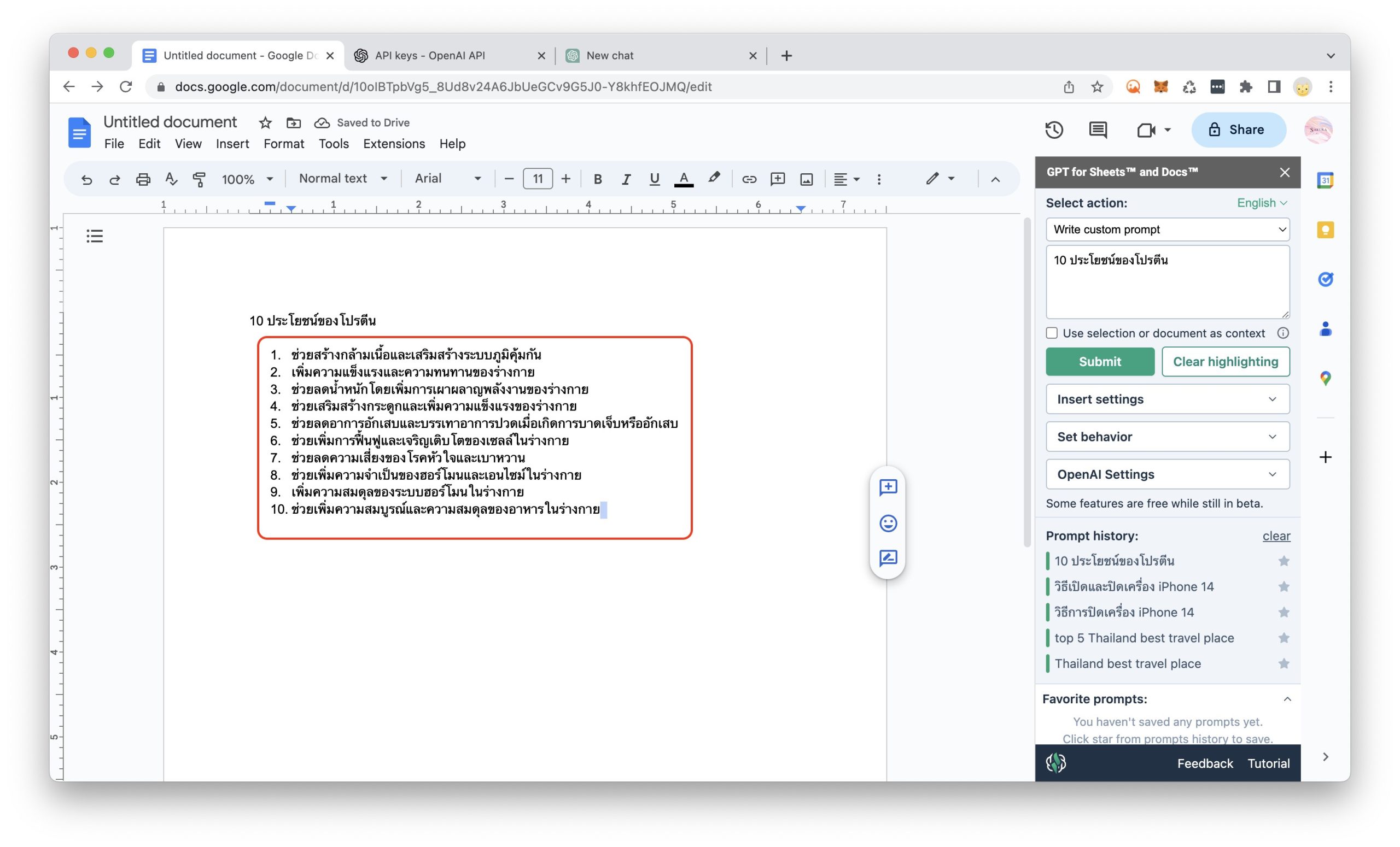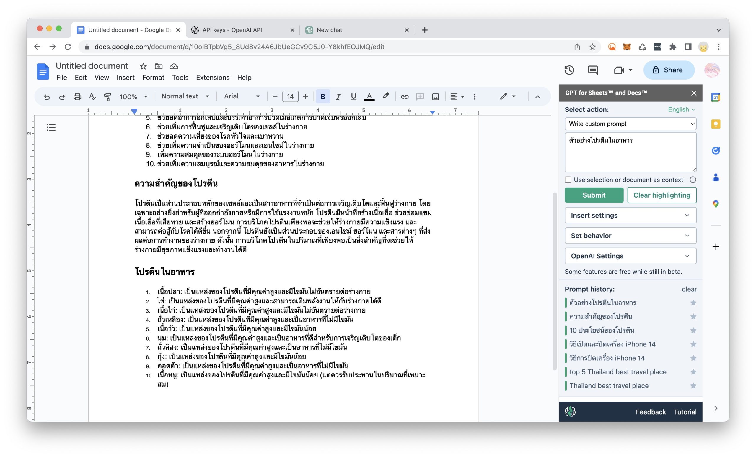 วิธีใช้งาน ChatGPT ใน Google Doc