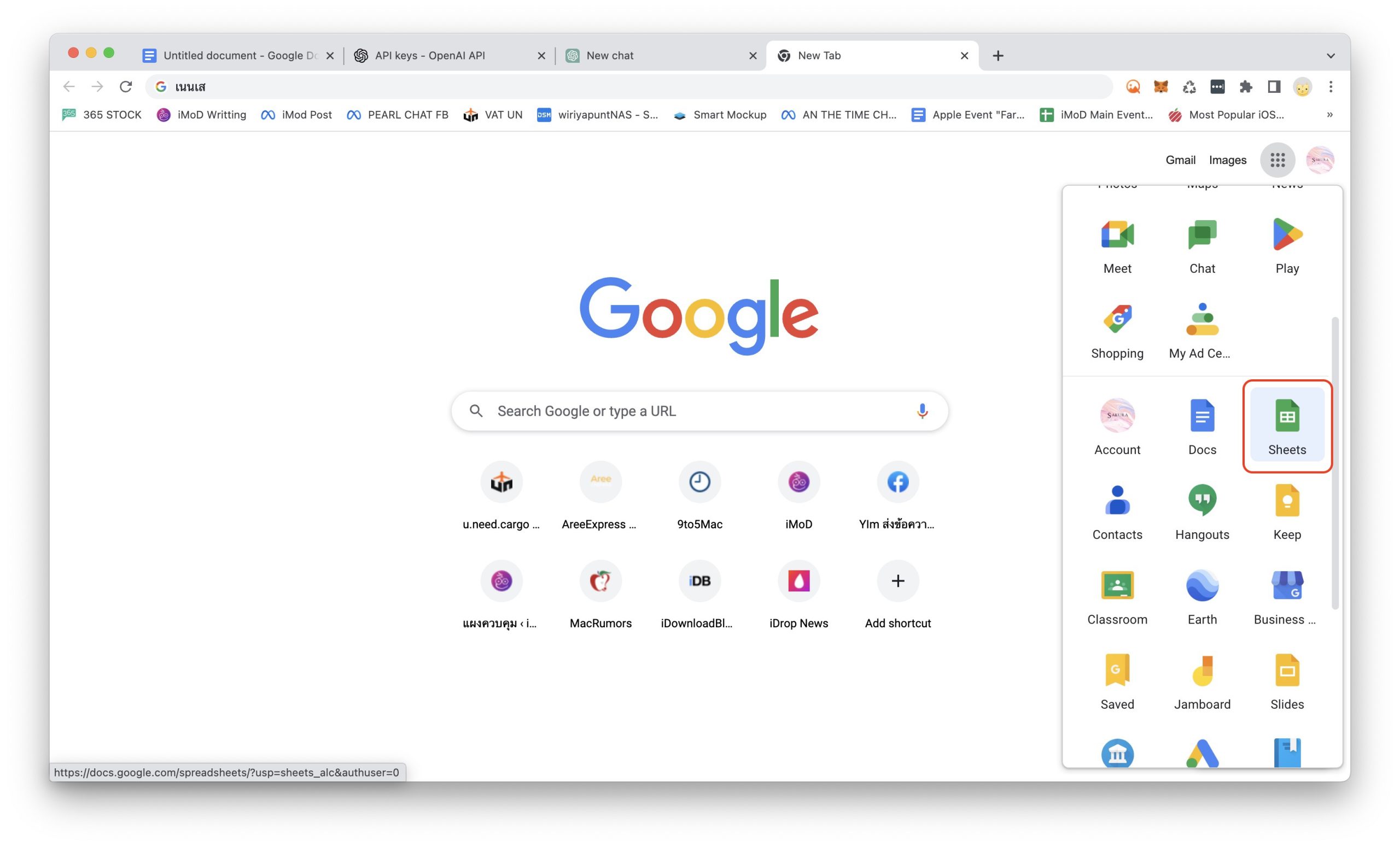 เราสามารถใช้งาน ChatGPT ใน Google Sheet หลังจากที่ติดตั้งแล้วได้เช่นกัน โดยไปที่ Google และเลือกเปิด Sheet ขึ้นมา (หากยังไม่ได้ติดตั้งส่วนขยาย ให้ทำตามขั้นตอนแรกก่อน)