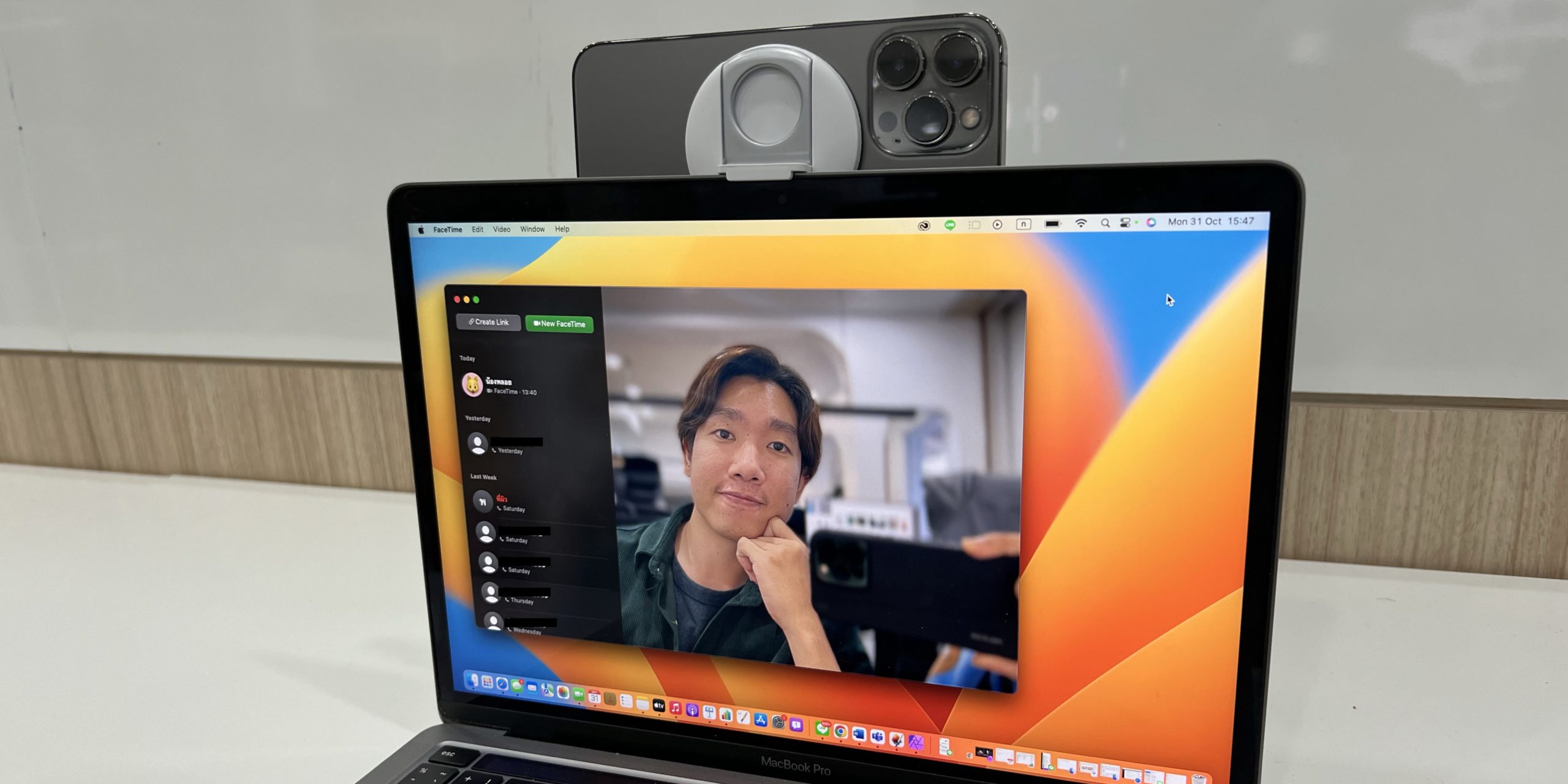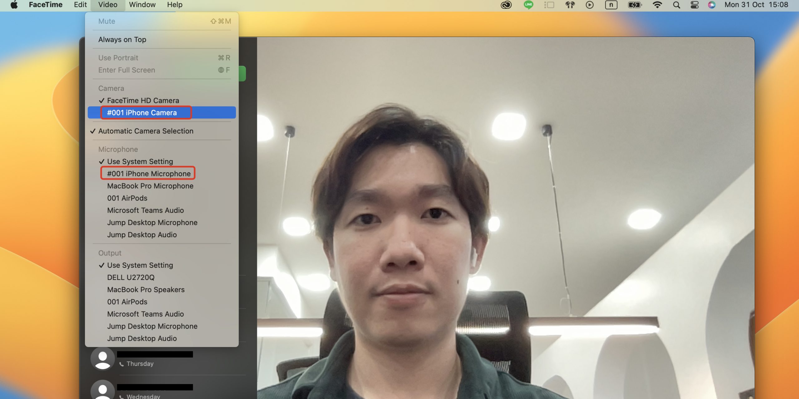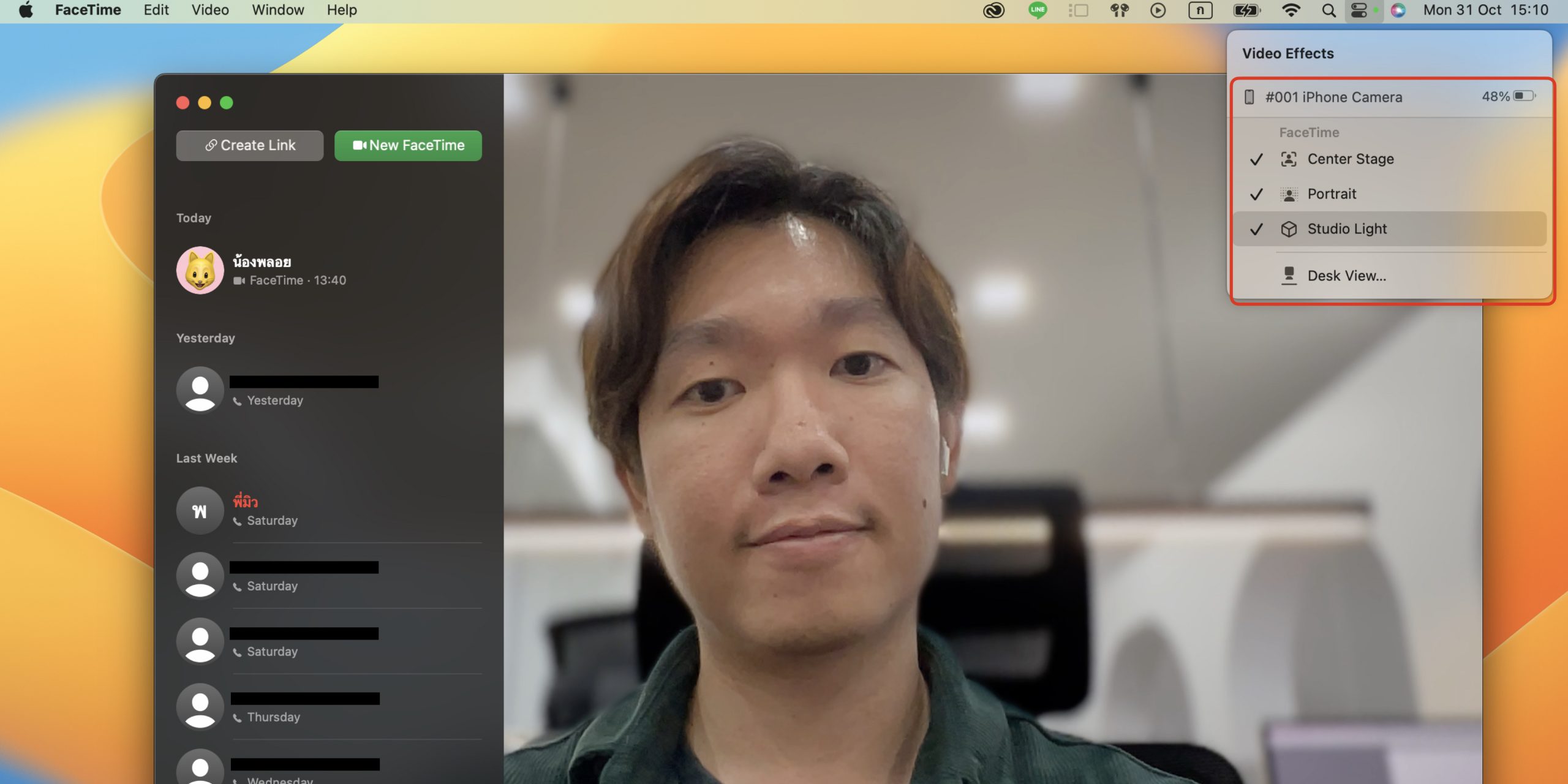 - นำ iPhone มาไว้ในบริเวณเดียวกันกับเครื่อง Mac จากนั้นเปิดแอปพลิเคชันที่ต้องการใช้งานกล้องขึ้นมา เช่น FaceTime หรือ Zoom จะสามารถเลือก iPhone มาใช้เป็นกล้องได้