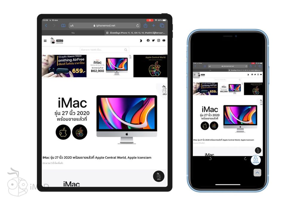 บน iPhone หรือเครื่องมีรีโมท สามารถซูมโดยใช้นิ้วขยาย หรือปรับพลิกหน้าจอได้ตามต้องการ