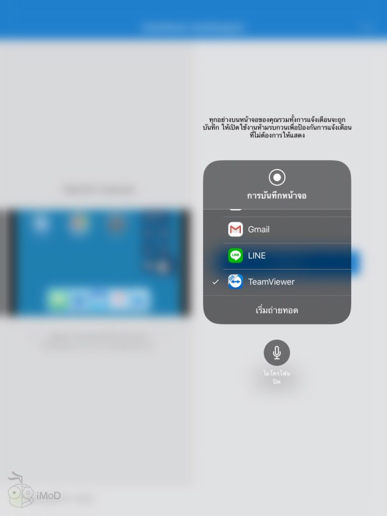 จากนั้นเลือก TeamViewer แล้วแตะ เริ่มถ่ายทอด