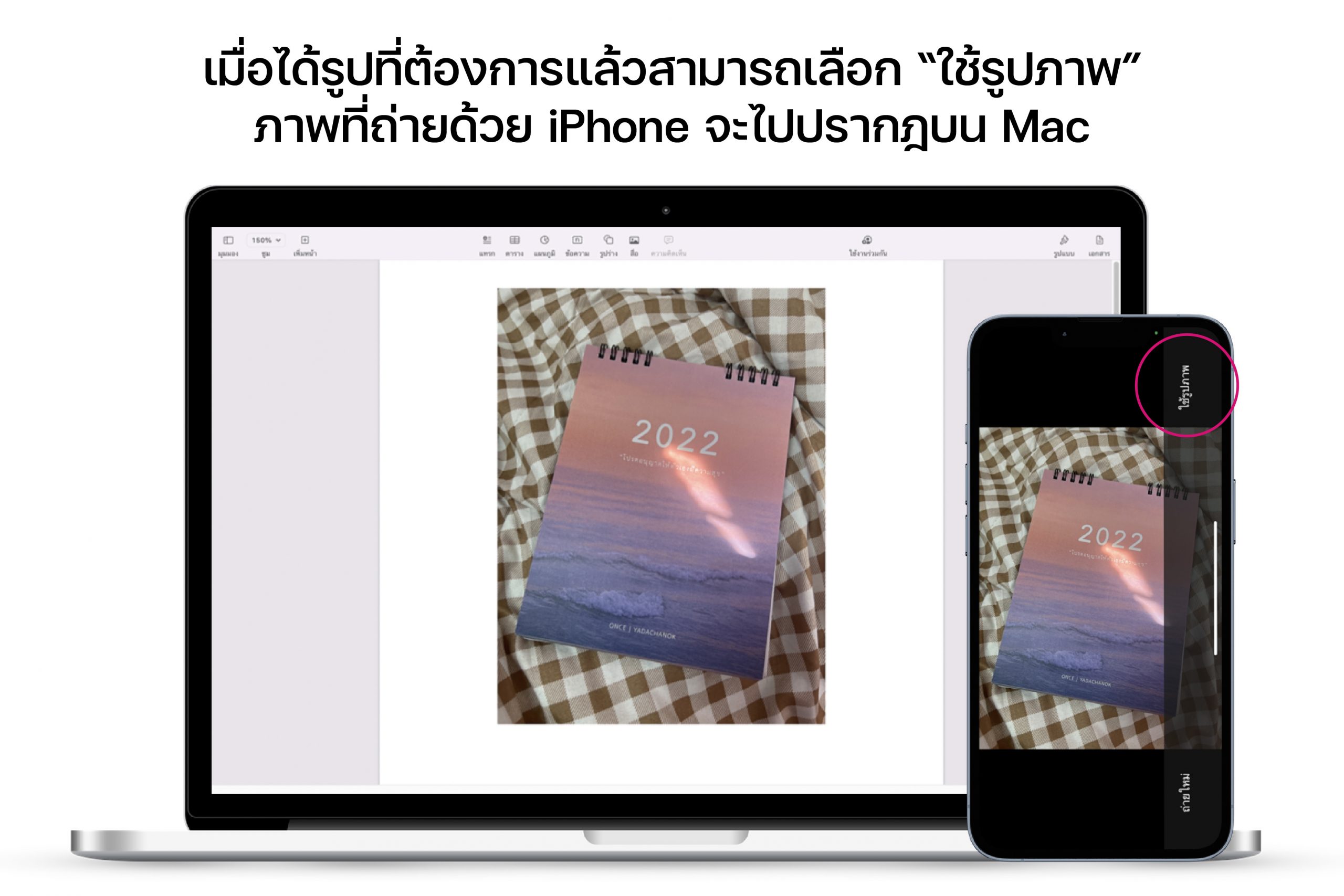 3. เมื่อเราได้รูปที่ต้องการแล้วสามารถเลือก “ใช้รูปภาพ” บน iPhone จากนั้นภาพที่ถ่ายด้วย iPhone จะไปปรากฎบนแอป iWork บน Mac