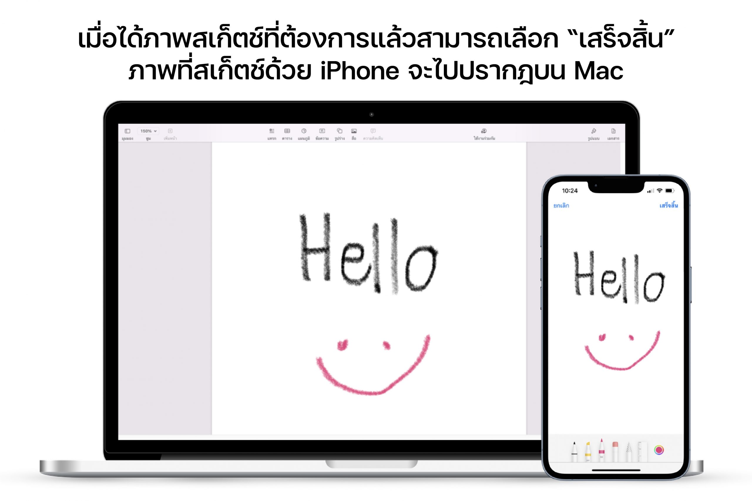 3. เมื่อเราภาพสเก็ตช์ที่ต้องการแล้วเลือก “เสร็จสิ้น” บน iPhone จากนั้นภาพสเก็ตช์ด้วย iPhone จะไปปรากฎบนแอป iWork บน Mac