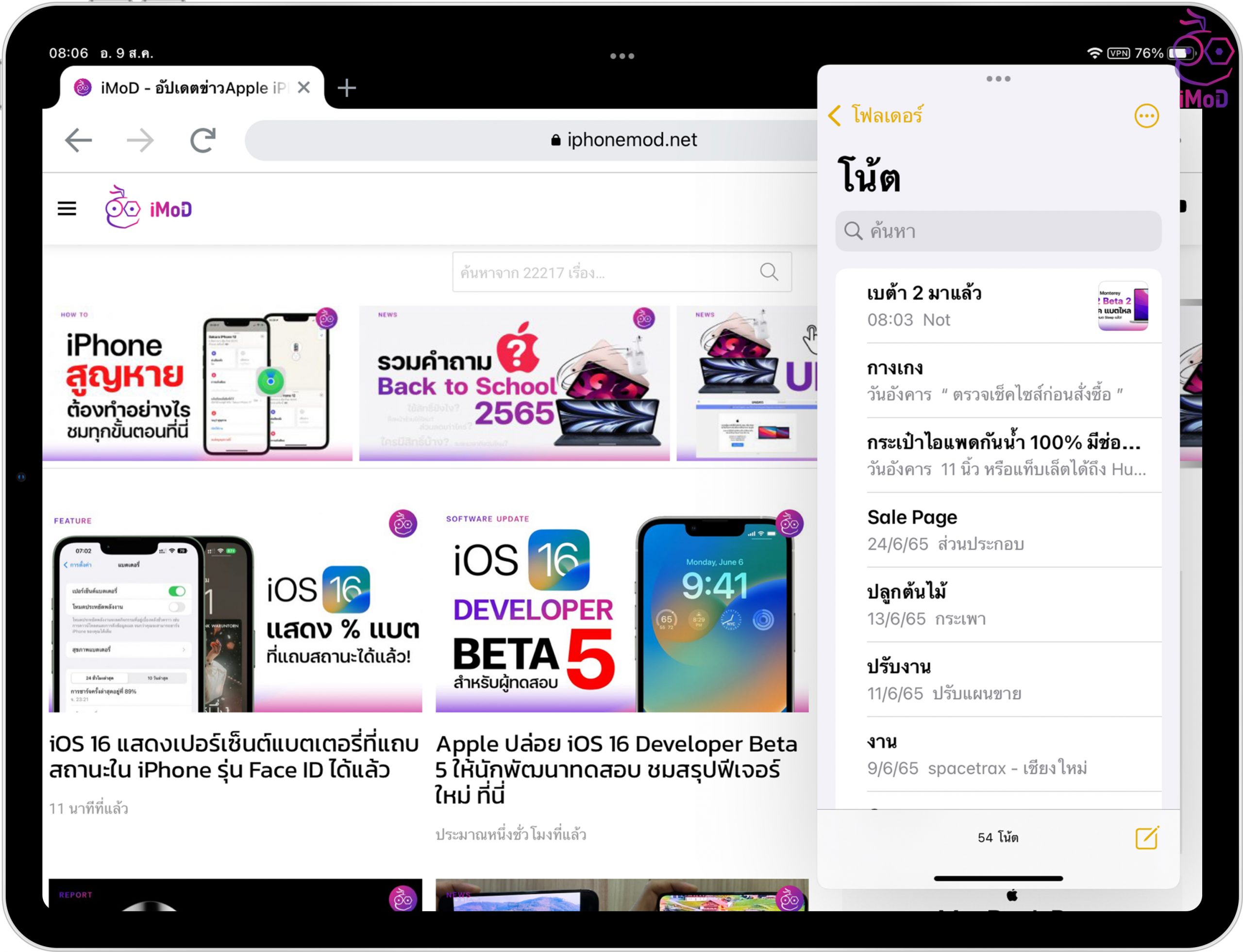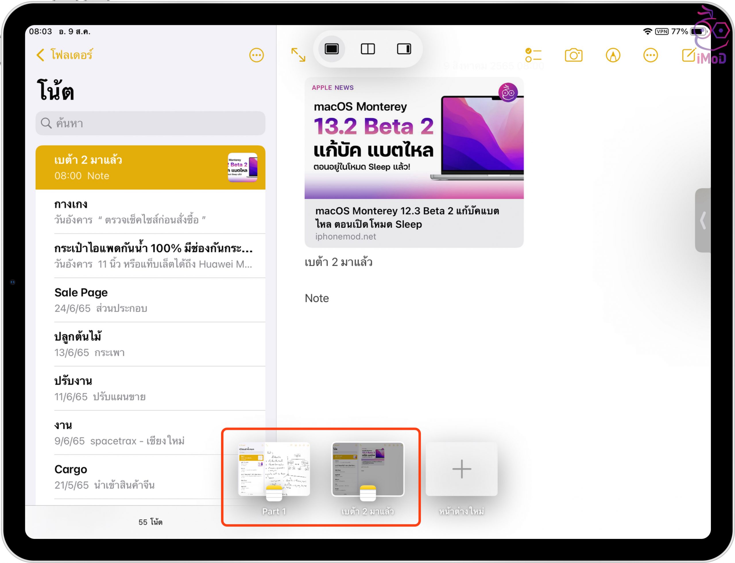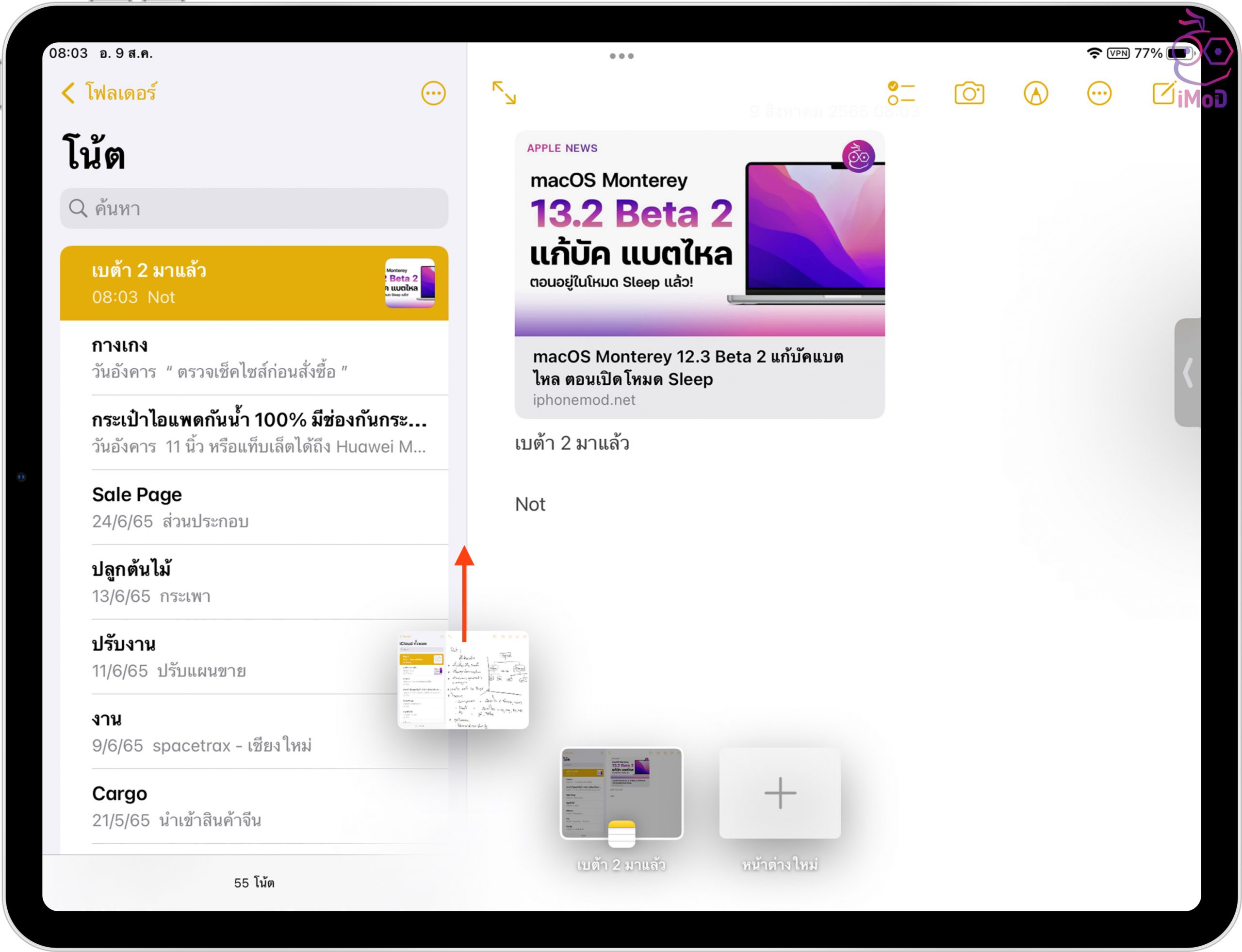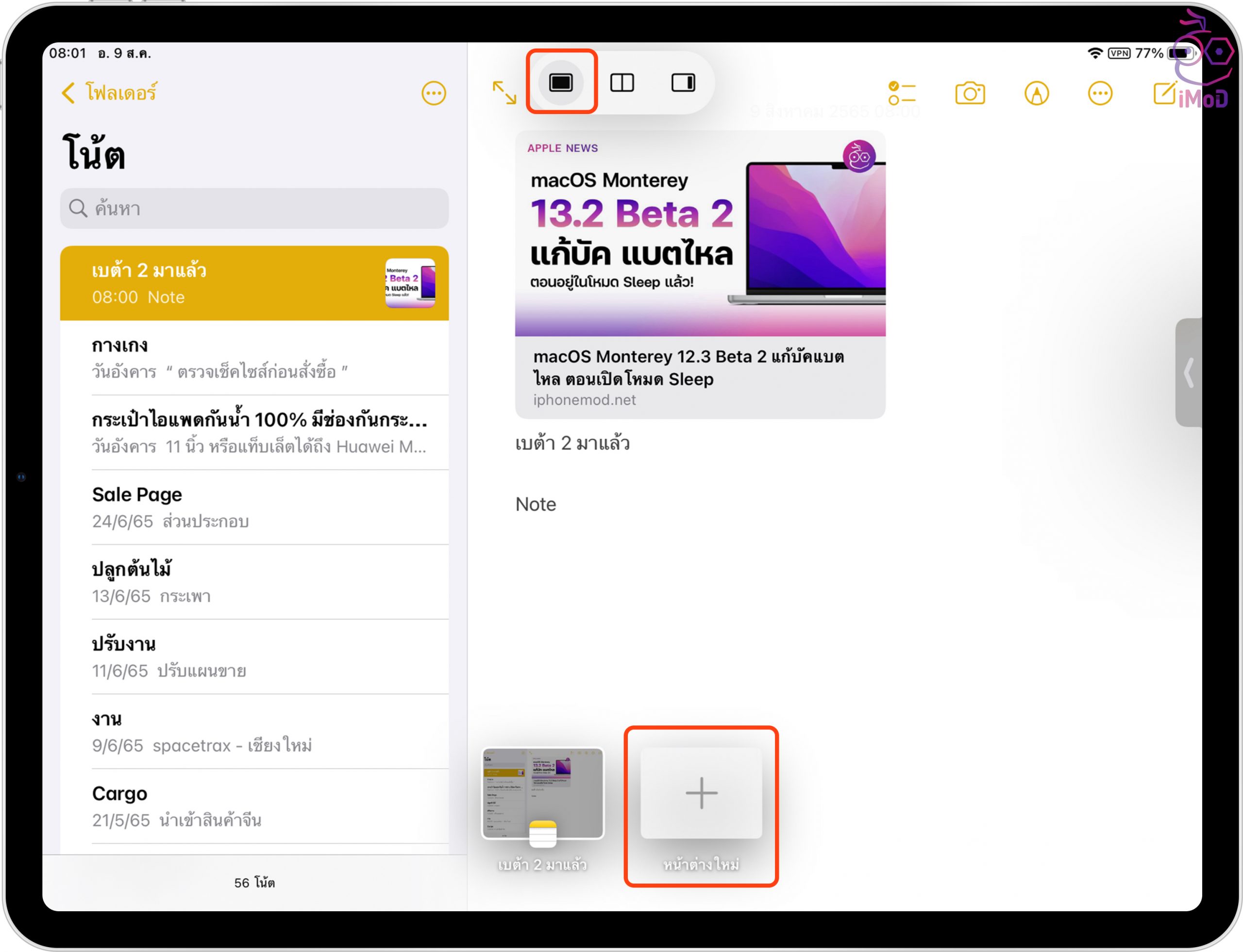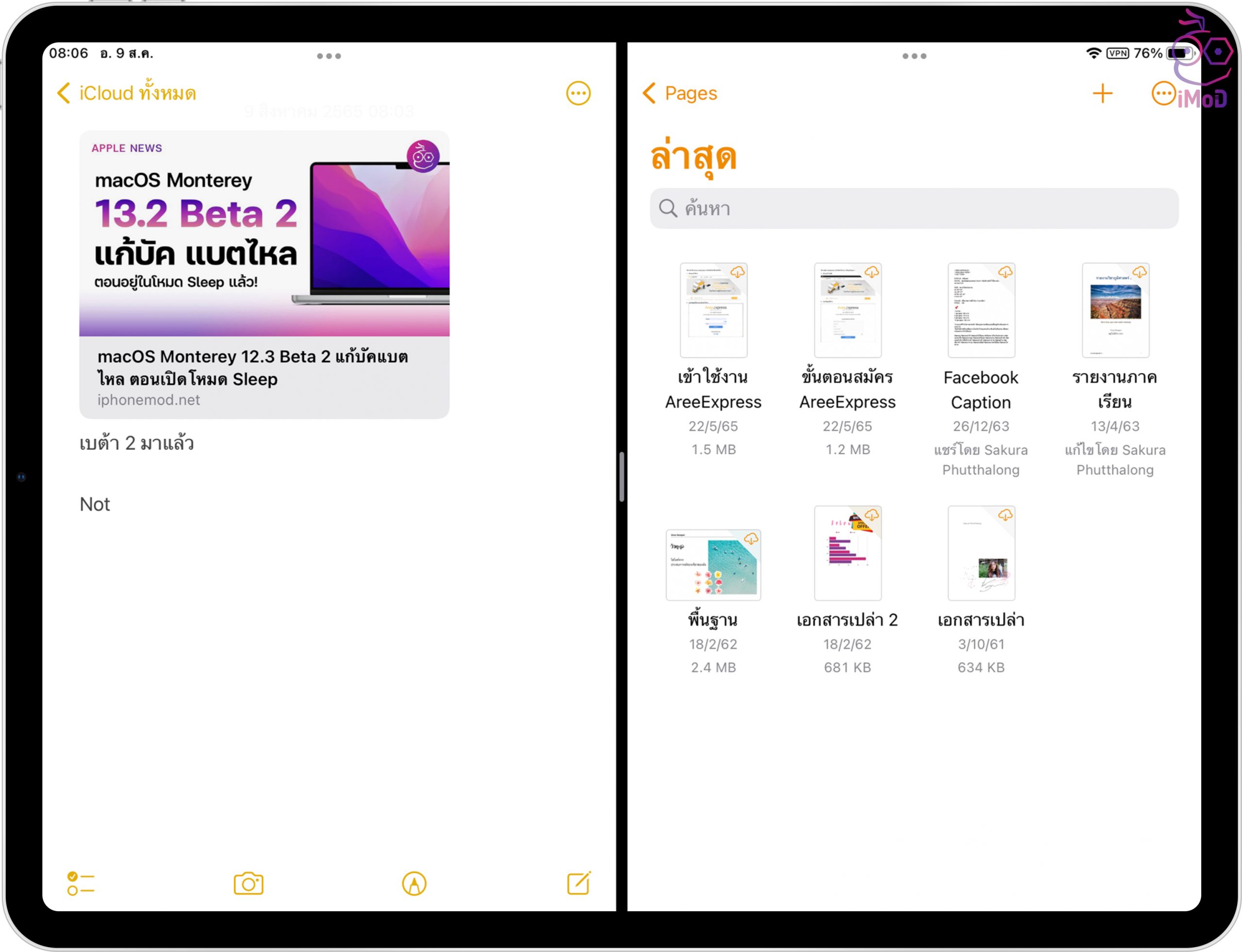 เราก็จะได้แอปที่แบ่งหน้าจอ iPad ทำงานพร้อมกันได้ 2 แอป