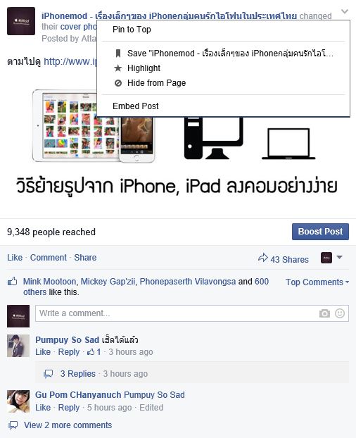 พฤติกรรมคนใช้ Facebook ในไทยค่อนข้างแปลกกว่าทั่วโลกมาก ไม่ว่าจะเป็นการใช้ Page, Group, Event หลายครั้งที่สลับมั่วกันไปหมด (บางครั้งแค่งานแค่งานยังต้องถึงกับสร้างเพจเลย – -*) ส่วนเรื่องการ Like ก็เช่นกัน (บางครั้งพ่อเพื่อนตายมีกด Like ด้วย – -*) และหลายครั้งบางคนเจอเนื้อหาโดนๆ ที่ต้องการเก็บไว้อ่านต่อแต่ทำไมถึงมักจะเลือกกด Share มาที่ Timeline ตัวเอง … ซึ่งมันเป็นวิธีที่ไม่ค่อยถูกต้องเอาซะเลย
