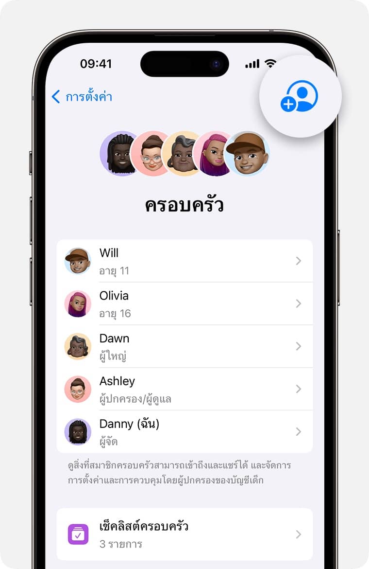 จึงเห็นเฉพาะคอนเทนต์ สิ่งที่ชอบ และคำแนะนำที่เหมาะกับตัวเอง ไม่ใช่ของทั้งครอบครัว นอกจากนี้ทั้งครอบครัวยังใช้แผนจัดเก็บข้อมูล iCloud แผนเดียวร่วมกัน ซึ่งมากพอที่จะจัดเก็บภาพถ่าย วิดีโอ และไฟล์ของทุกคน โดยที่ไฟล์และเอกสารของแต่ละคนจะยังคงเป็นส่วนตัว แต่สามารถดูว่าแต่ละคนใช้พื้นที่ไปเท่าไหร่ได้ง่ายๆ