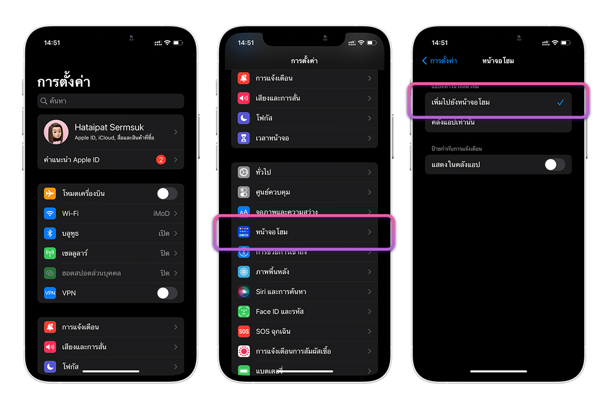 4. ย้ายแอปจากคลังแอปออกมายังหน้าจอโฮม