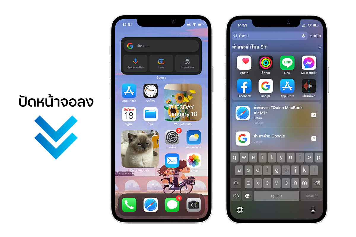 ถ้าไม่อยากจะแสดงหน้าจอโฮมทั้งหมดบน iPhone เราสามารถใช้การค้นหาแอป และเปิดแอปที่ซ่อนอยู่ไว้ได้ด้วย Spotlight Search ในบางครั้งวิธีนี้ยังเป็นวิธีค้นหาแอปที่รวดเร็วกว่า ค้นหาบนคลังแอป