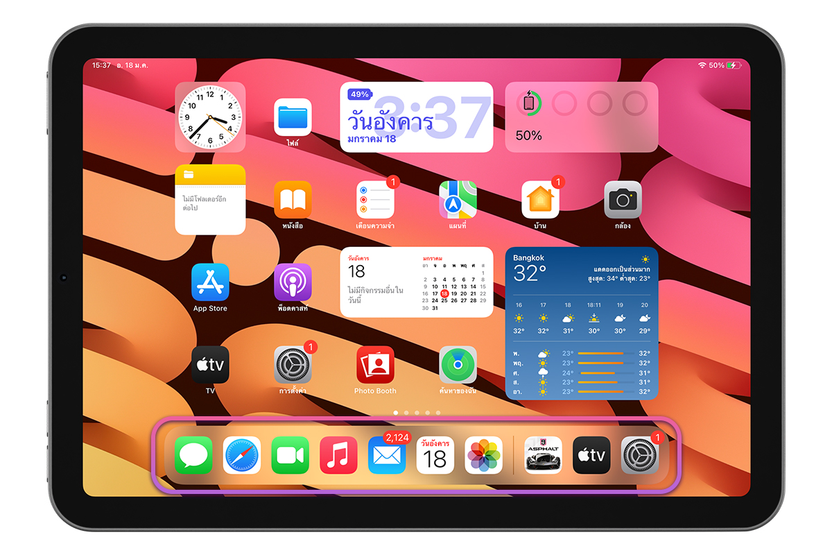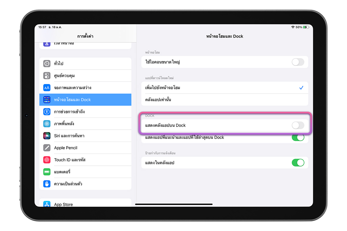 ถ้ามี iPad ที่อัปเดตเป็น iPadOS 15 หรือใหม่กว่า จะเห็นปุ่มลัดคลังแอปอยุ่บน Dock Bar ถ้าเราไม่ชอบหรืออยากปิด สามารถทำได้ดังนี้