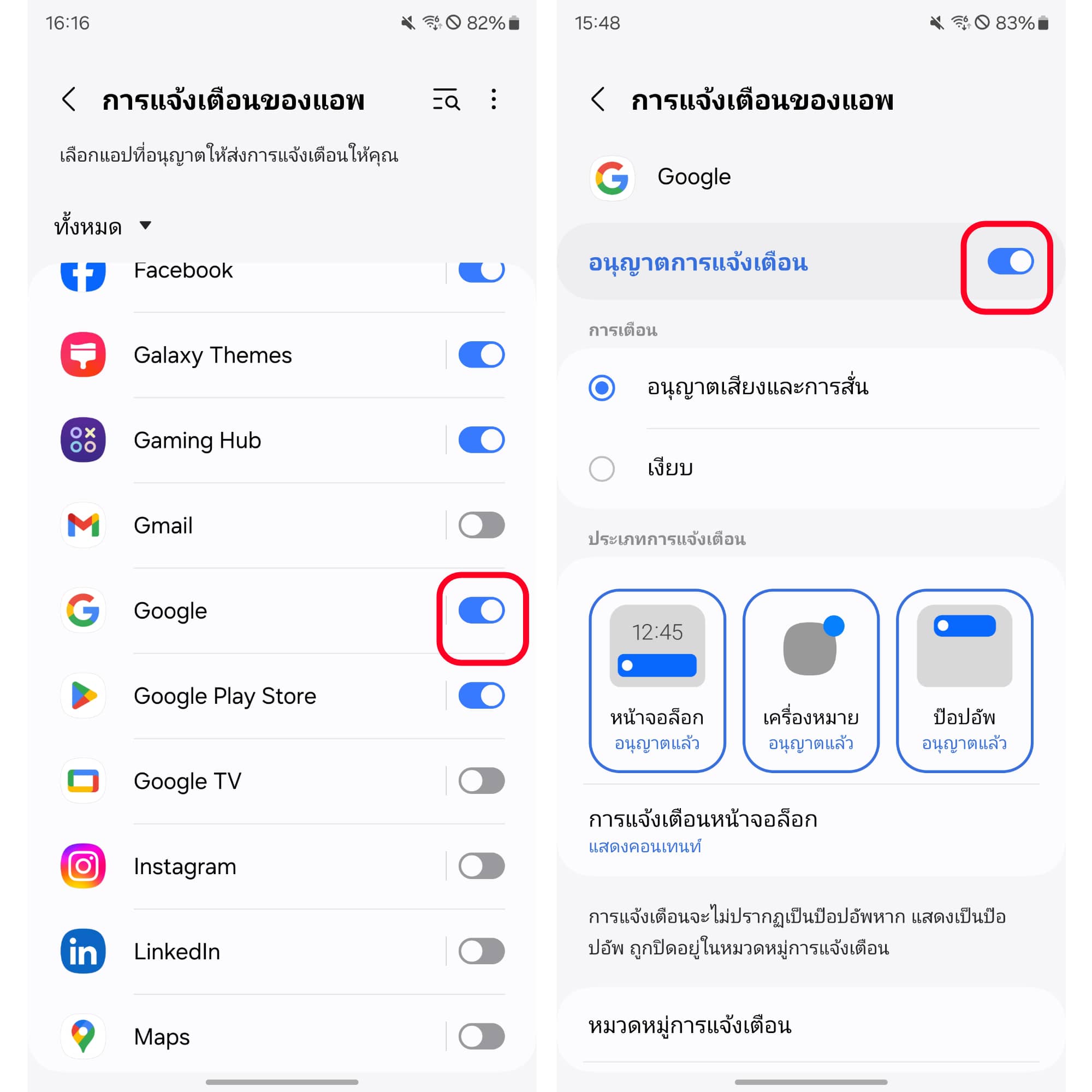 มาที่ การตั้งค่า > การแจ้งเตือน
